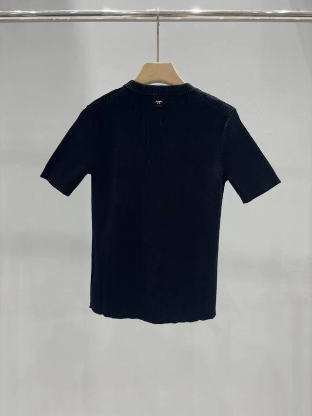 / New Chanel 25 new double C Logo hollow floral short-sleeved sweater Size: Sml D
