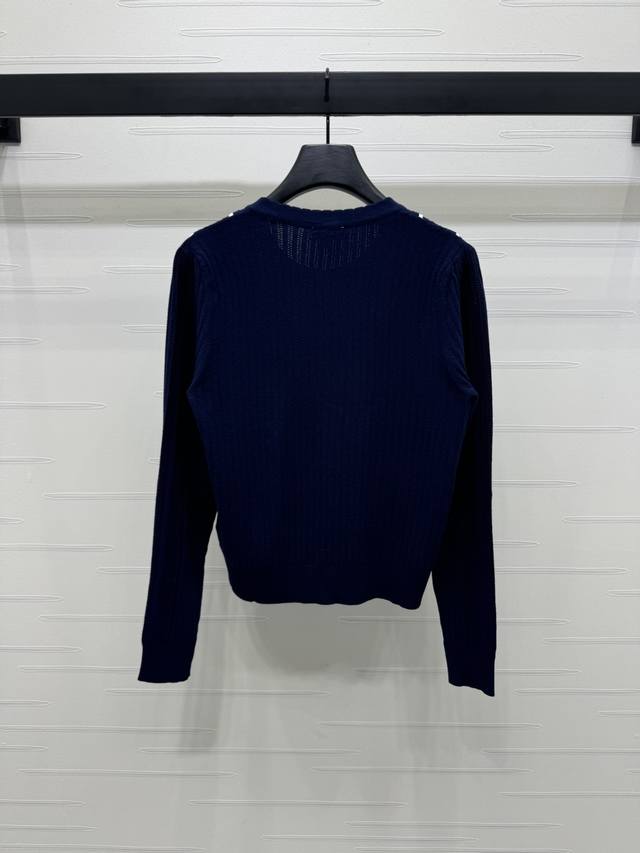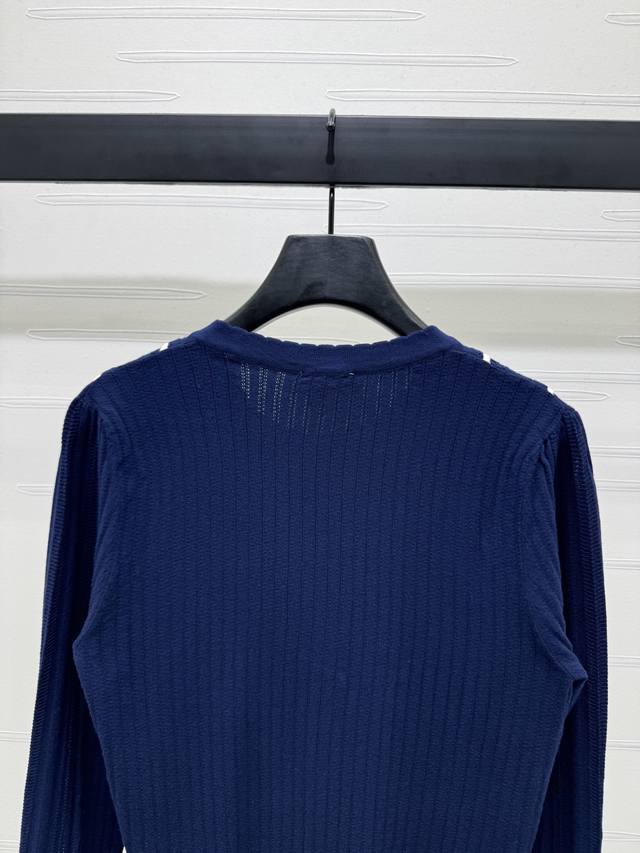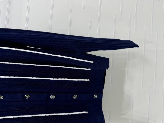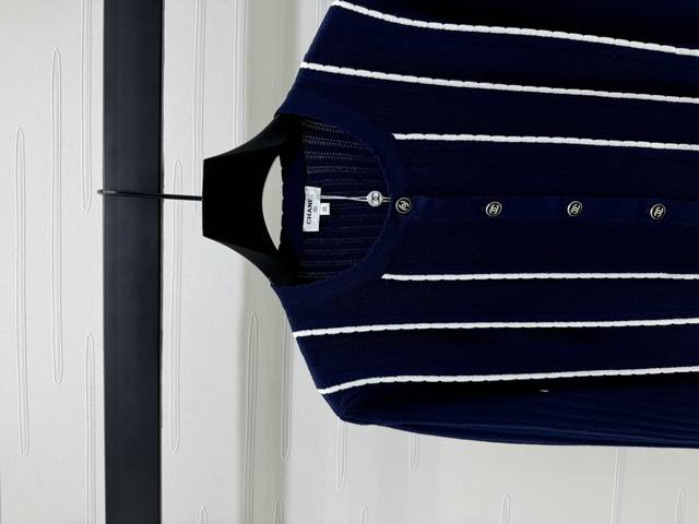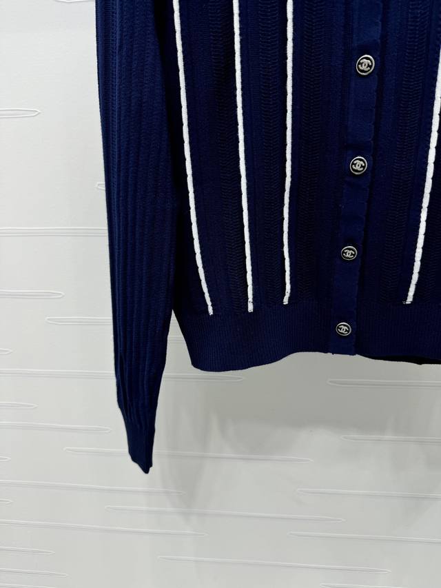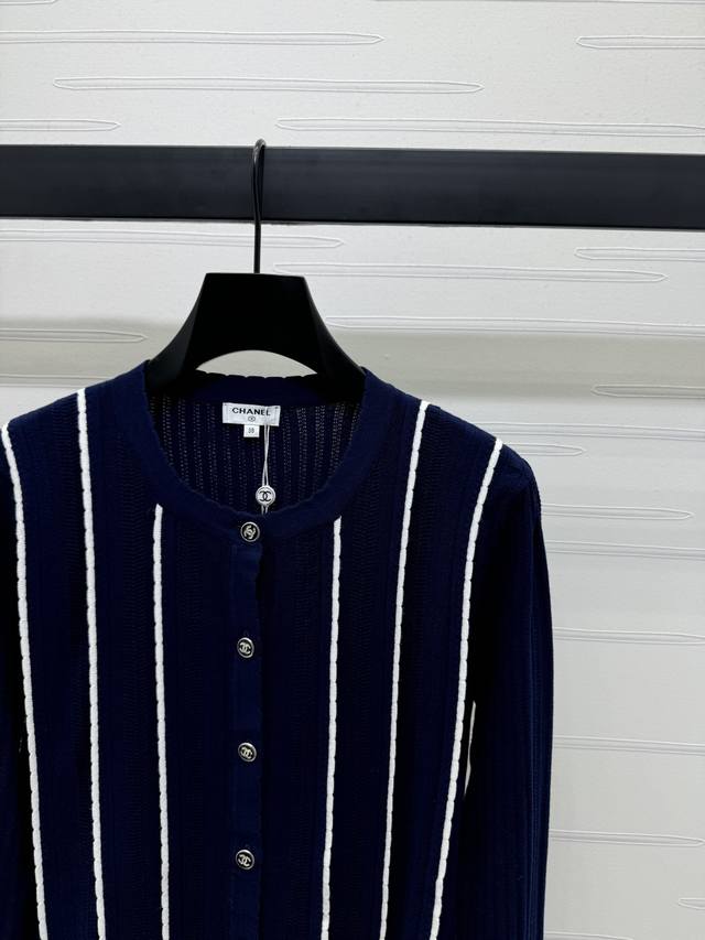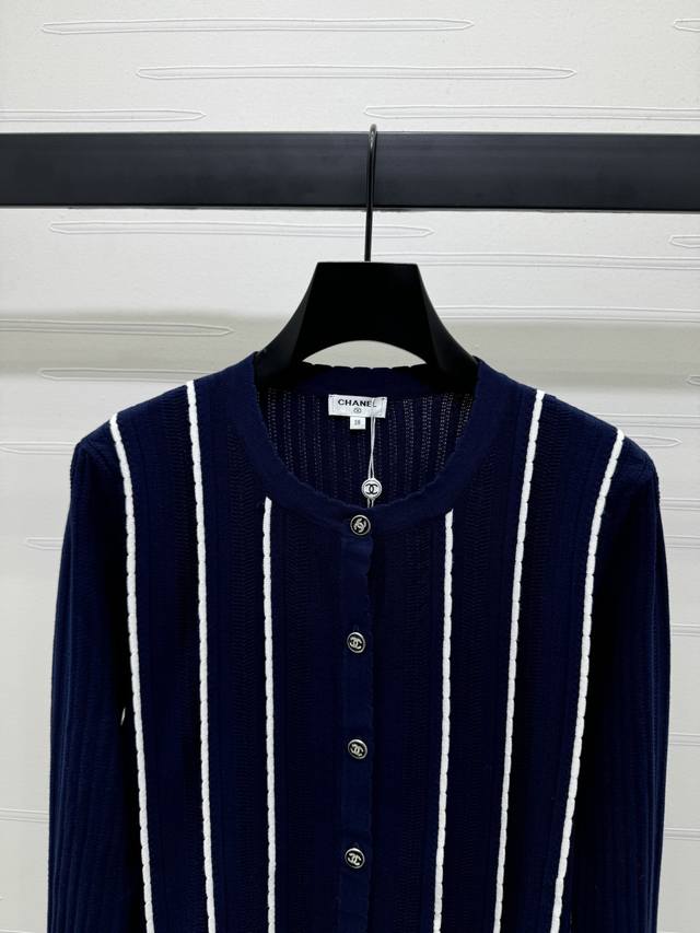 New original high-end quality Chane* 2025 early autumn latest series! Vertical striped long-sleeved knitted cardigan! Custom imported wool knitted material texture high-end comfortable round neck knitted long-sleeved tailoring all over vertical stripes contrast color single row double C button adjustment adds a gentle literary atmosphere can be matched with any style! 1 color! SM-L3 size! High quality bulk A706B470C