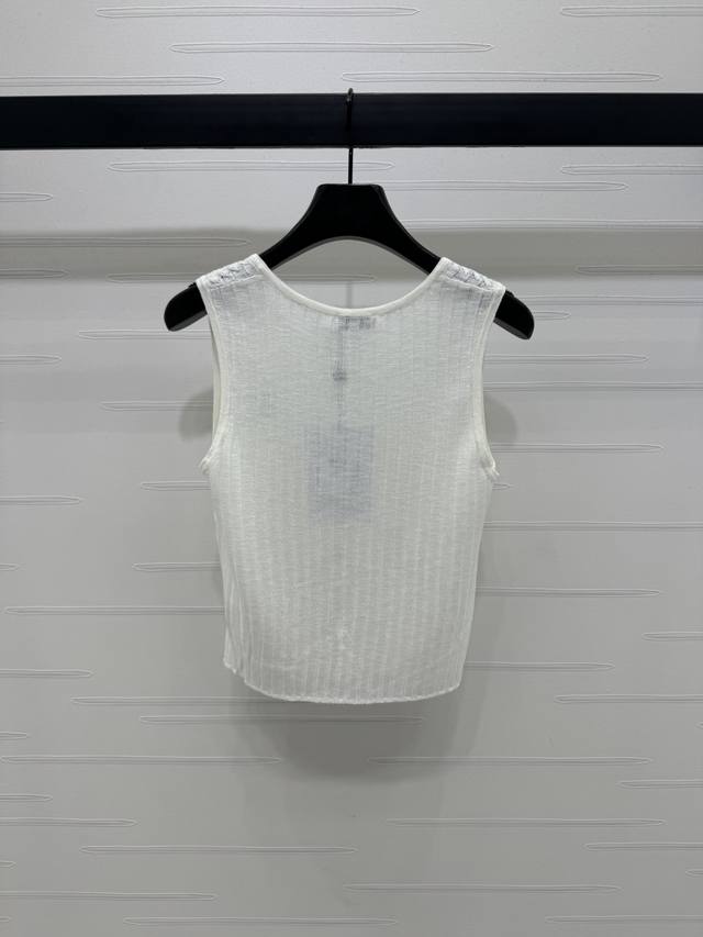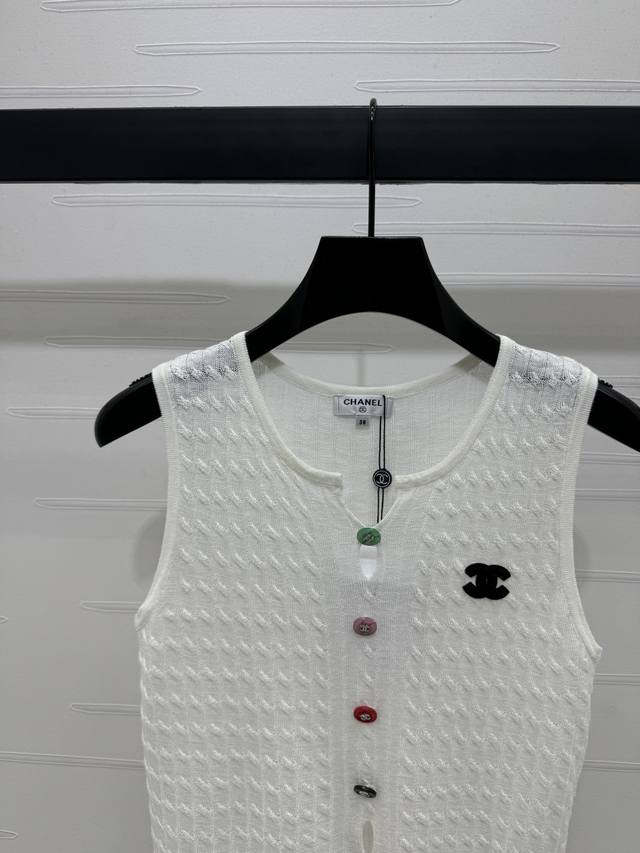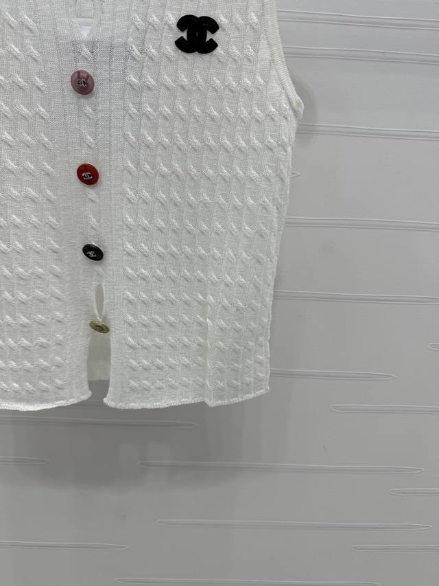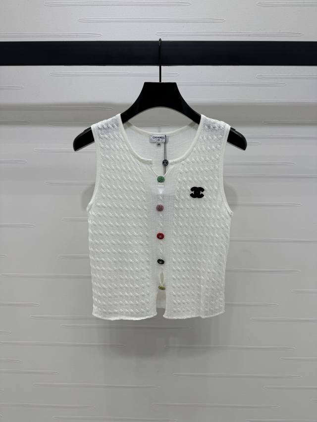 New original high-end quality Chane* 2025 Spring and Summer latest series! V-neck twisted knitted vest! Custom imported yarn weaving soft skin-friendly comfortable style V-neck knitted vest version neckline adjustment appropriate skin exposure beautification head and shoulder ratio more slimming large body twisted crochet texture colorful buttons add vitality one-sided letter double C logo decoration highlights taste elastic version highlights the figure playful age reduction whitening daily travel or party easy to control! Color! SM-L3 size! High quality large goods A706B290