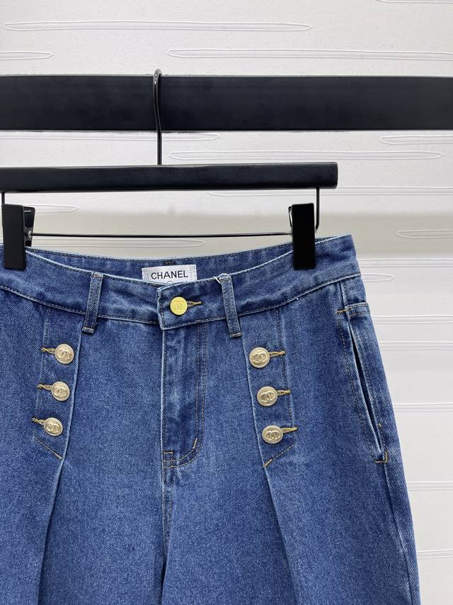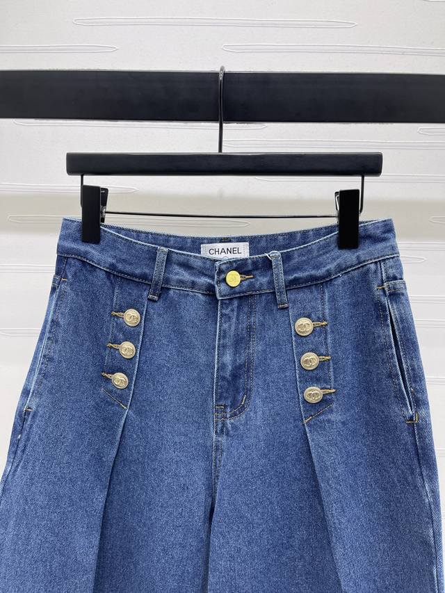 New, original, high-quality Chane* 2025 Early Fall collection! Buttoned straight-leg jeans! Custom-made cotton twill denim for a comfortable and stylish look. High-waisted, double-breasted straight-leg jeans with custom-made double-breasted buttons for added detailing. Hip pockets with a subtle logo highlight the brand's style. Straight-leg pants with an effortless, stylish fit! One color! Sizes SM-L3! High-quality, bulky stock A706B320C