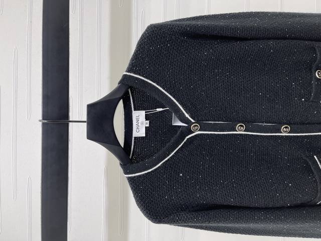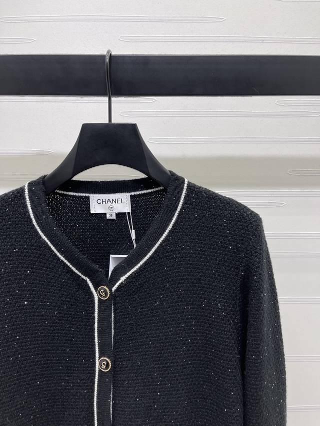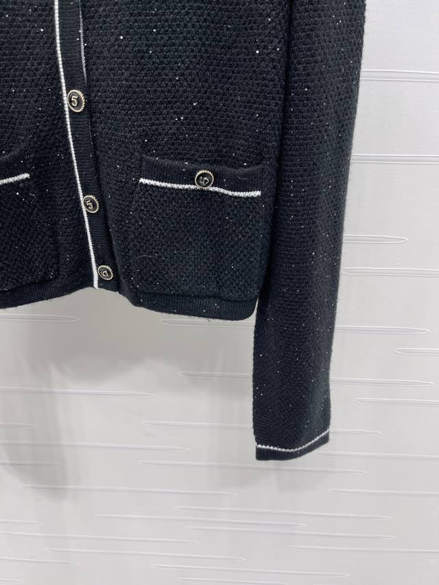New, original, high-quality Chane* 2025 Early Fall Collection! Contrast-colored long-sleeved knit cardigan! Crafted from custom wool yarn, this soft, skin-friendly sweetheart neckline cardigan features a three-dimensional crocheted pattern for a slimming yet stylish look. The neckline extends to the front, accented with contrasting colors on the cuffs and hem. Elastic, ribbed stripes provide a perfect fit. Double chest pockets and button embellishments showcase the brand's playful, youthful aesthetic. The classic black and white color scheme is gentle and elegant, perfect for everyday wear! Available in two colors! Sizes SM-L3! High-quality, bulky stock A706B400C