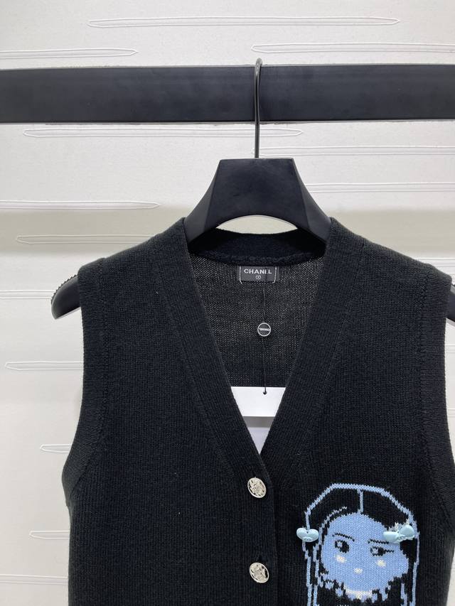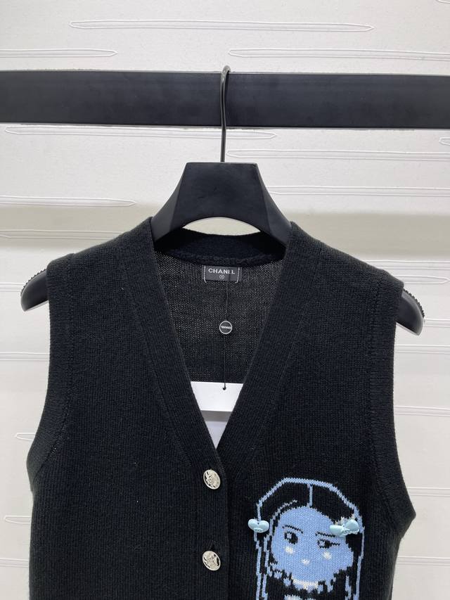 New, original, high-quality Chane* 2025 Early Fall collection! Crocheted cartoon-patterned knitted vest! Woven from custom wool yarn, it's soft, comfortable, stylish, and slimming. The V-neck knitted vest features all-over hems and elastic threads for a snug, refined, and elegant look. The chest logo features a crocheted cartoon figure, a three-dimensional heart bow, and a double-C logo, showcasing the brand's signature vibe. Adding a gentle, artistic Korean touch to your outfit, it's perfect for layering in fall and winter! Available in two colors! Sizes SM-L3! High-quality, bulky stock A706B340C