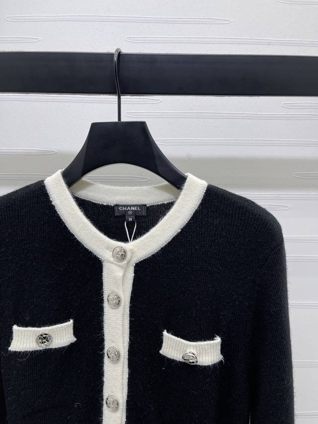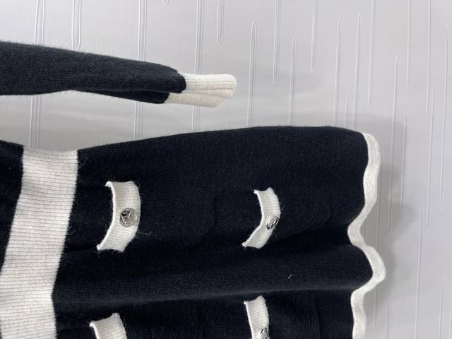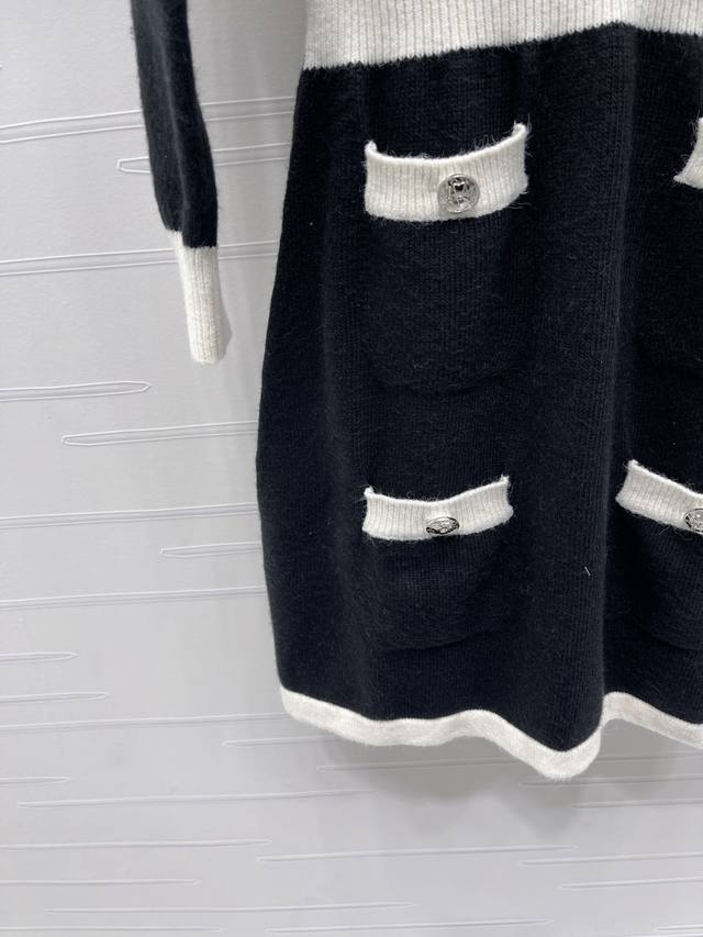New, original, high-quality Chane* 2025 Early Fall collection! Double-pocket, round-neck, knitted long-sleeved dress! Custom-woven wool yarn for a premium look. Straight-shoulder knitted cardigan cut accentuates the figure, accentuated by double chest pockets and engraved buttons. The delicate crocheted texture accentuates the whole body, creating a sophisticated and elegant look. Two colors! Sizes SM-L3! High-quality, bulky stock. A706B430C