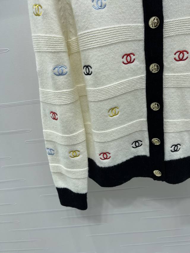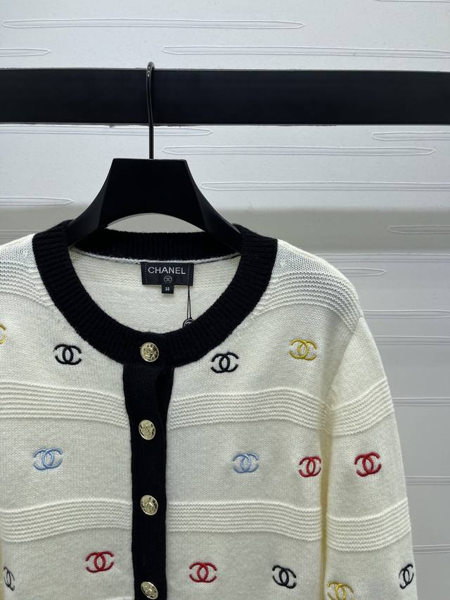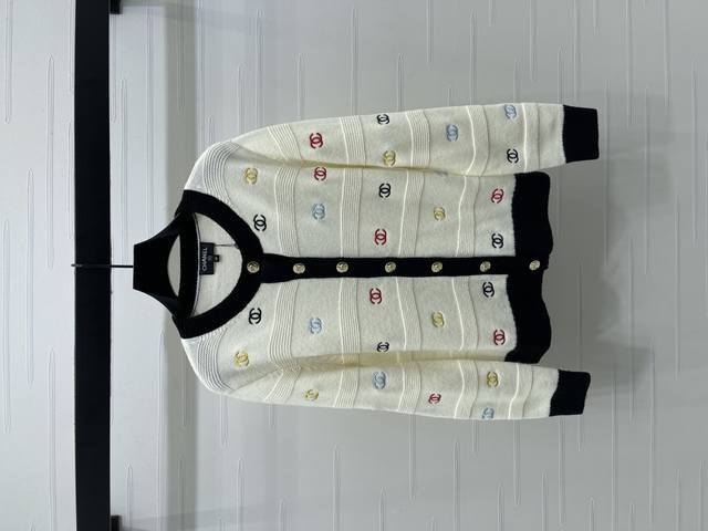 New, original, high-quality Chane* 2025 Early Fall collection! Embroidered double-C round-neck long-sleeved cardigan! Custom-made wool knit, soft and refined, with a round neckline and dense crochet texture throughout. Colorful embroidery and a double-C logo throughout. Single-row gold button details for a playful, refined look that's youthful and youthful. Easily wearable for everyday travel or casual gatherings! Available in two colors! Sizes SM-L3! High-quality, large-volume