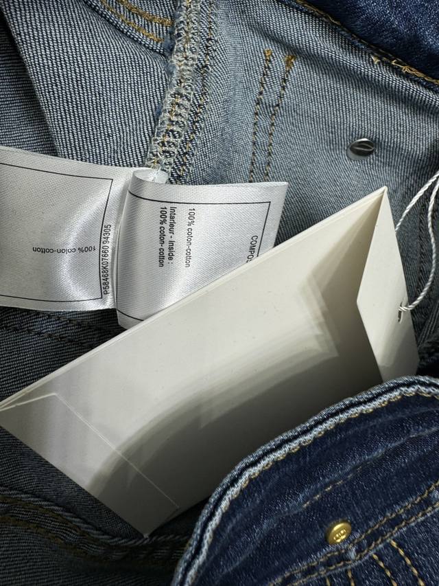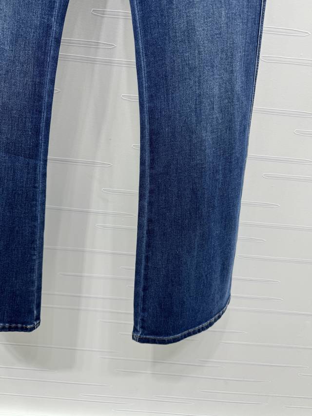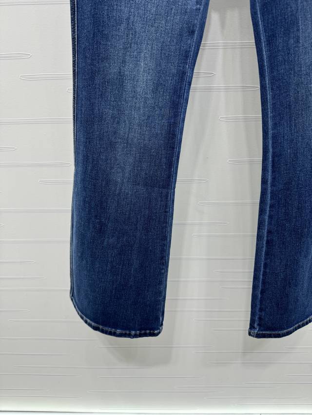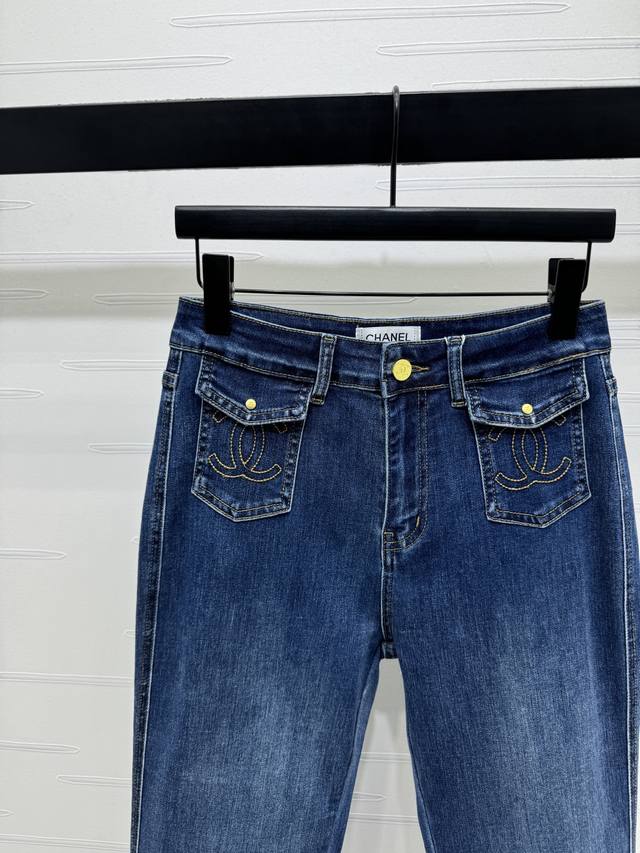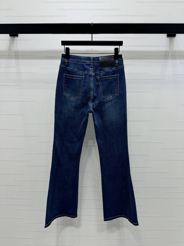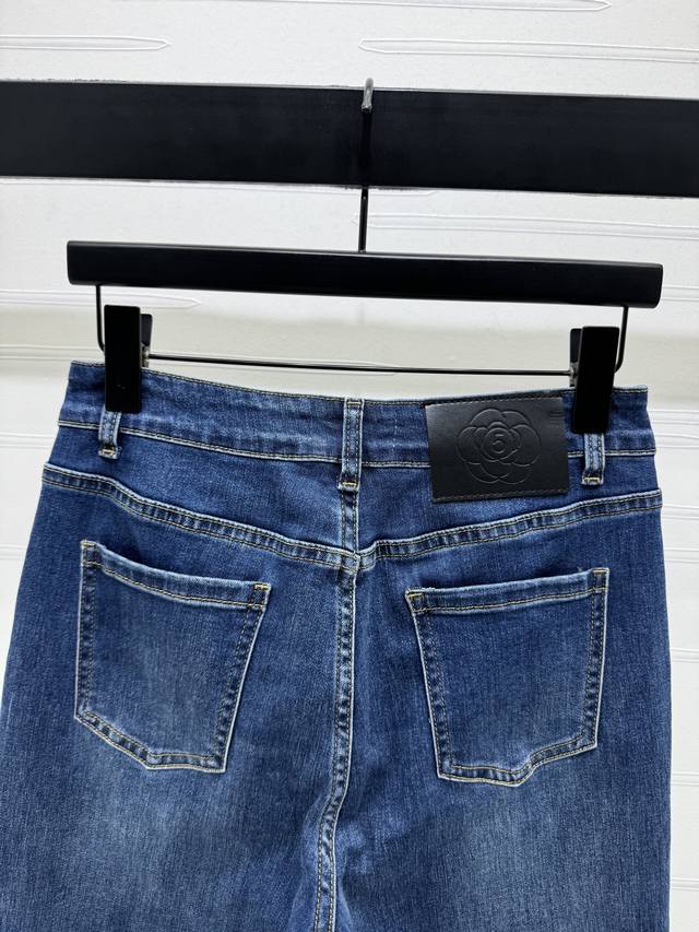 New, original, high-quality Chane* 2025 Early Fall collection! Flared jeans with flaps! Custom-made cotton twill denim, soft, comfortable, and breathable. Repeated enzyme washes and a tailored silhouette for a slimmer, longer-lasting fit. High-rise waist, buttoned pockets, front flap pockets, and a double-C logo instantly elevate the brand's style. The fabric is effortless, relaxed, fashionable, and accommodating, shaping your legs while exuding a high-street, casual vibe! Available in one color! 3 sizes SM-L! High-quality, bulky stock. A706B320C
