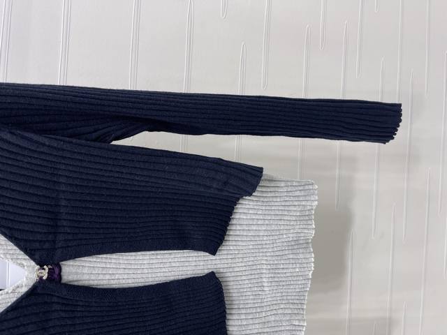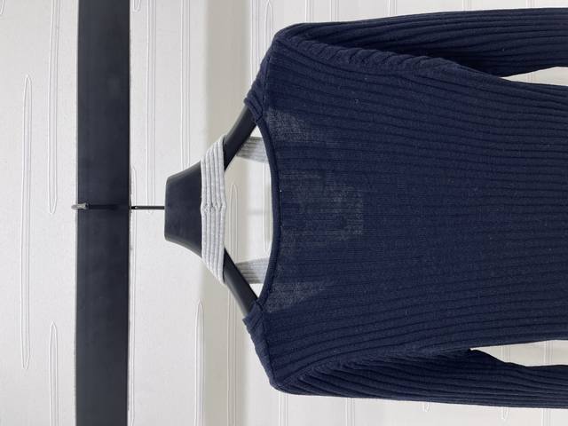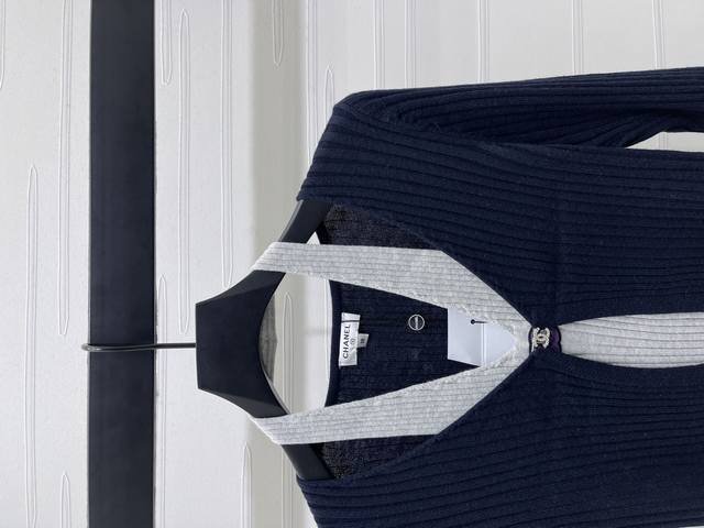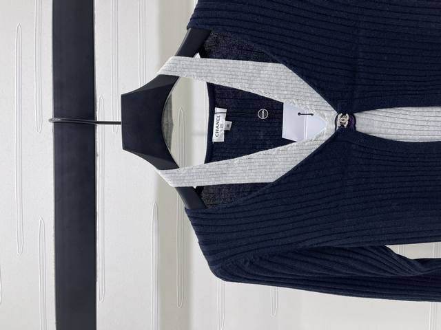 New, original, high-quality Chane* 2025 Early Fall collection! Halter neck, suspender, long-sleeved, faux two-piece knit top! Woven from custom wool yarn for comfort, softness, and plenty of stretch. Halter neck, suspender, V-neck, open-front, knitted long-sleeved, faux two-piece design. Lined with suspenders, the outer layer features a textured, layered design with vertical ribbed stripes. The front placket is hollowed out with rhinestones and connected by double C-shaped buckles, highlighting the brand's premium style. The garment is comfortable and stretchy, adding a lively touch to any outfit. The fitted silhouette is smooth and slimming! Available in 2 colors! Sizes SM-L3! High-quality, bulky stock A706B390C
