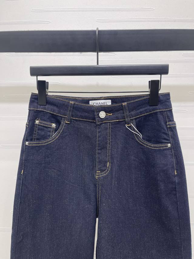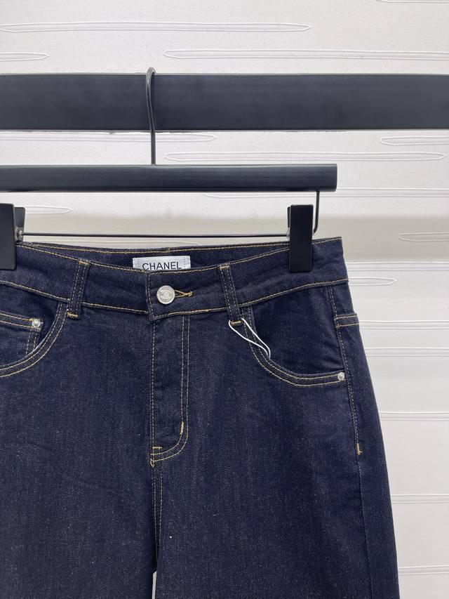 New, original, high-quality Chane* 2025 Early Fall collection! Heavily beaded, high-waisted, straight-leg jeans! Custom-made twill denim and cotton fabric, rich in texture and breathable, with a dark enzyme wash. Retro and stylish, rear hip pockets are beaded with a signature logo, and the leather back label echoes the brand's style, instantly elevating the straight-leg silhouette. For a relaxed, fashionable look, this pair is comfortable and comfortable for any body type! Available in 1 color! 3 sizes SM-L! High-quality, bulky stock A706B320C