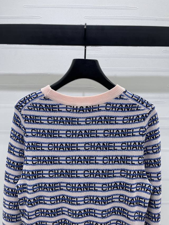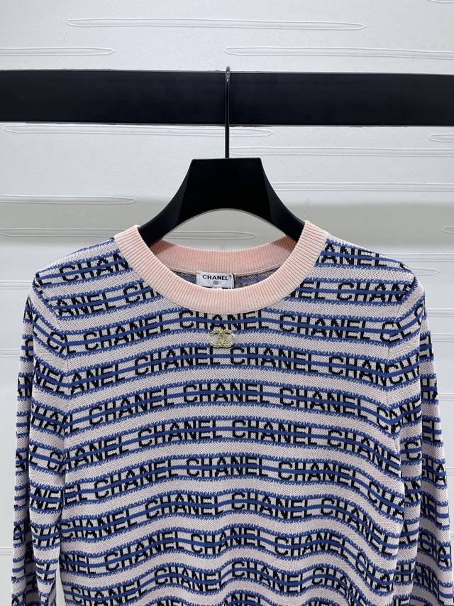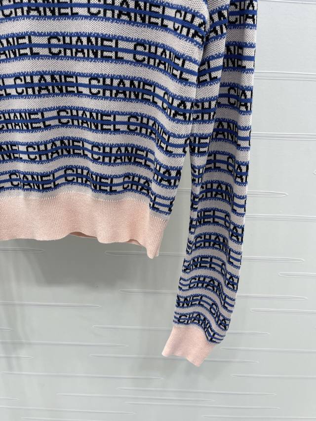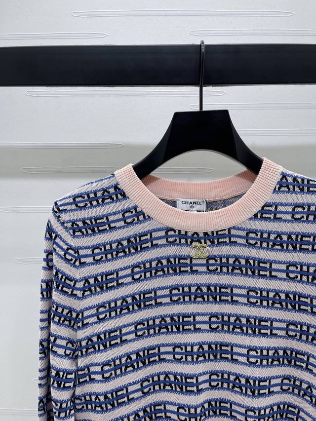 New, original, high-quality Chane* 2025 Early Fall collection! Knitted sweater with letter logo! Custom wool knit, soft and comfortable, crew neck pullover design, windproof and cold-resistant. Allover stripes, contrasting letter logo, split design, and double C hardware on the chest add vitality and highlight the brand design. Whether for daily travel or leisure time, it will highlight your style and personality! 3 colors! Sizes SM-L3! High-quality, large-volume