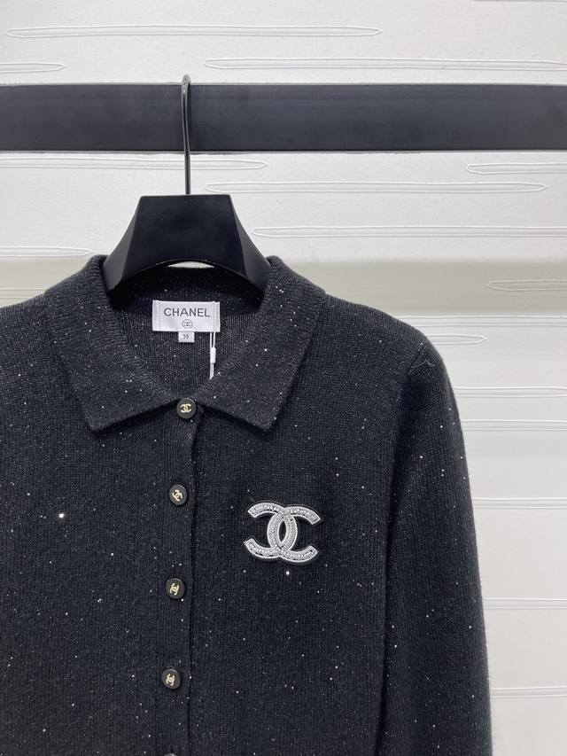 New, original, high-quality Chane* 2025 Early Fall collection! Lapel long-sleeved cardigan! Custom wool yarn woven for a delicate, breathable and comfortable feel. Lapel knitted long-sleeved cardigan cut with solid solid color, sequined accents, and a logo on the chest highlight the brand's style. A gorgeous, sparkling, and eye-catching look. Regular fit, versatile, suitable for all ages and skin tones, and a youthful, fashionable look! Available in 2 colors! Sizes SM-L3! High-quality, bulky stock A706B400C