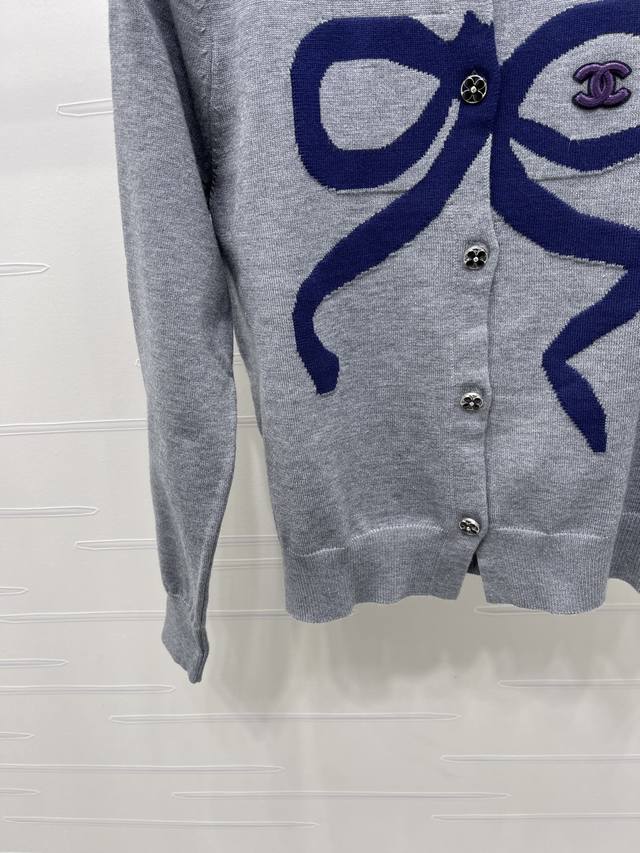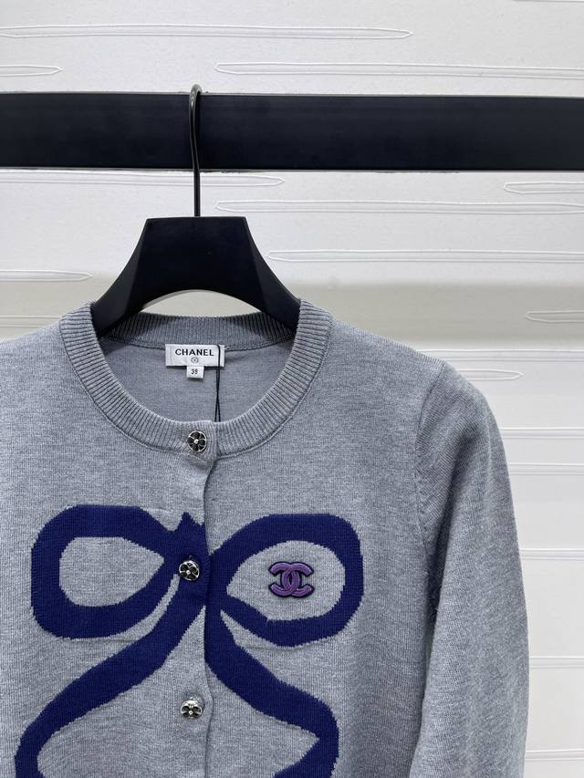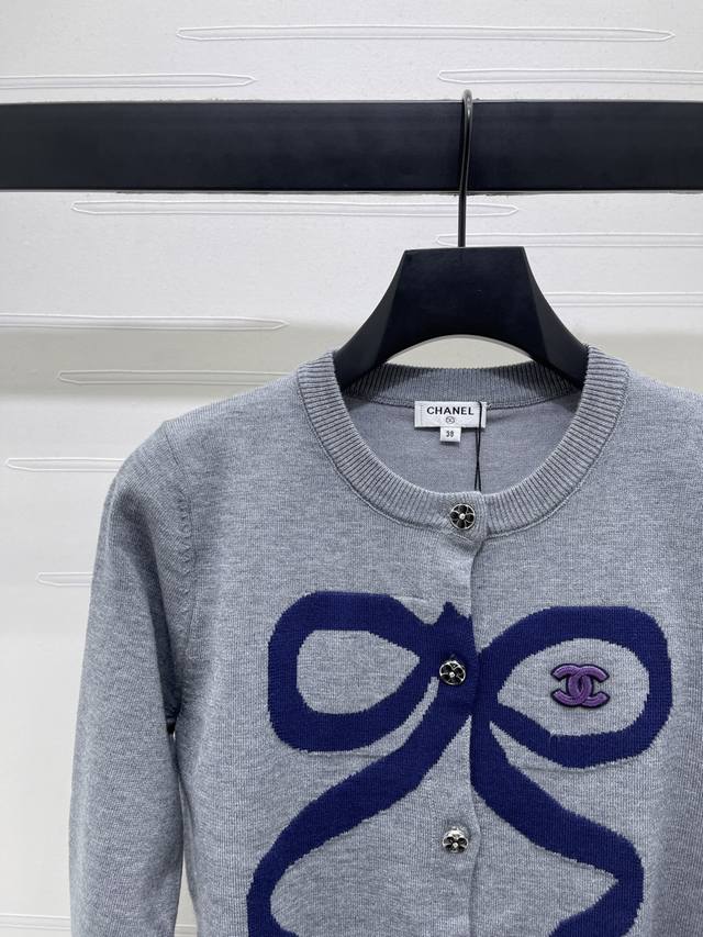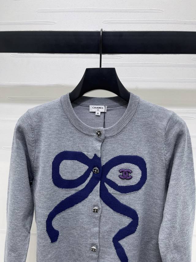 New, original, high-quality Chane* 2025 Early Fall collection! Round-neck bow cardigan! Custom-made wool knit for a soft, stretchy, and comfortable fit. Round-neck button-down cardigan with ribbed collar and a single row of floral metal buttons. A bow pattern on the chest, accented with a double C logo, adds a sense of layering and elegance. The fitted silhouette is stylish and slimming, perfect for everyday commuting! Available in 3 colors! Sizes SM-L3! High-quality, bulky stock A706B430C