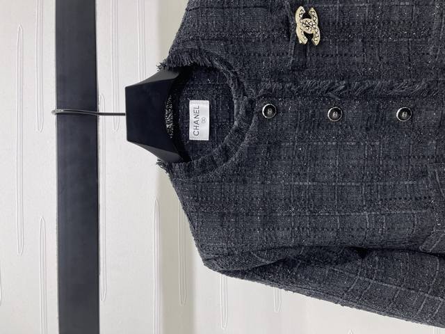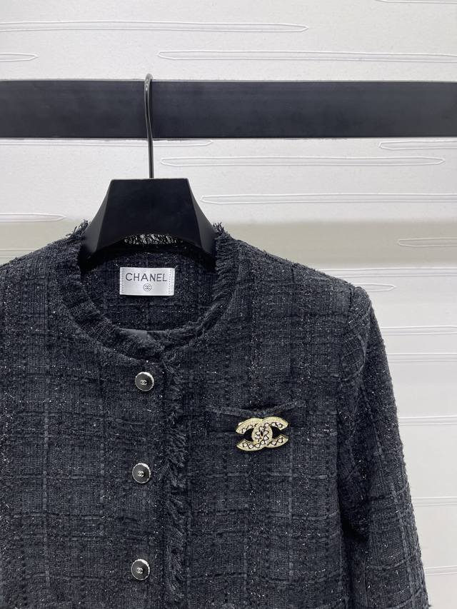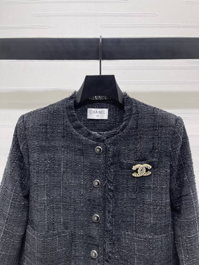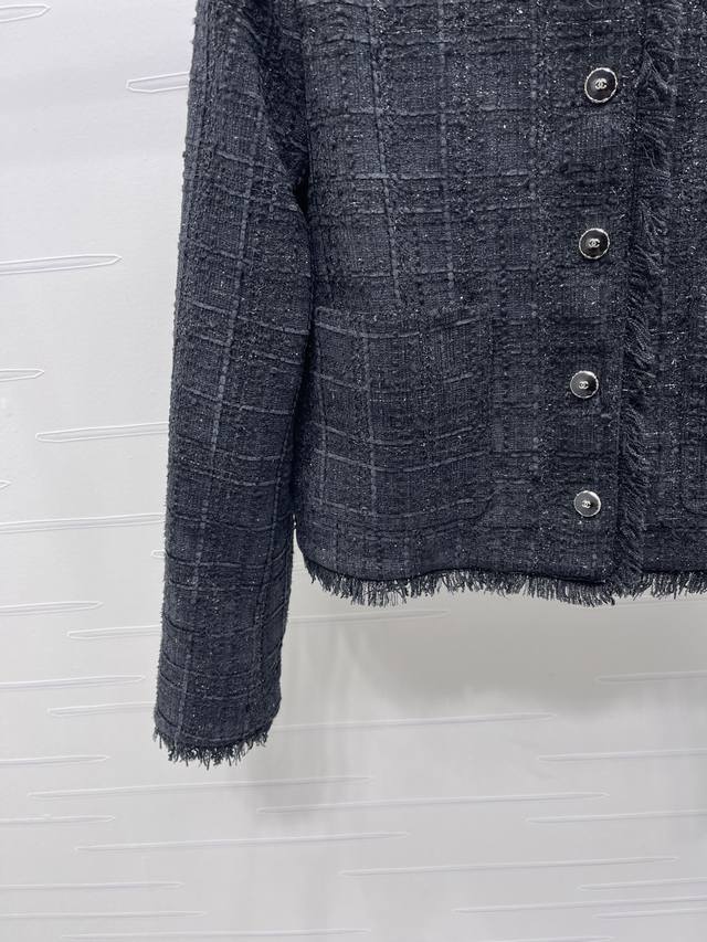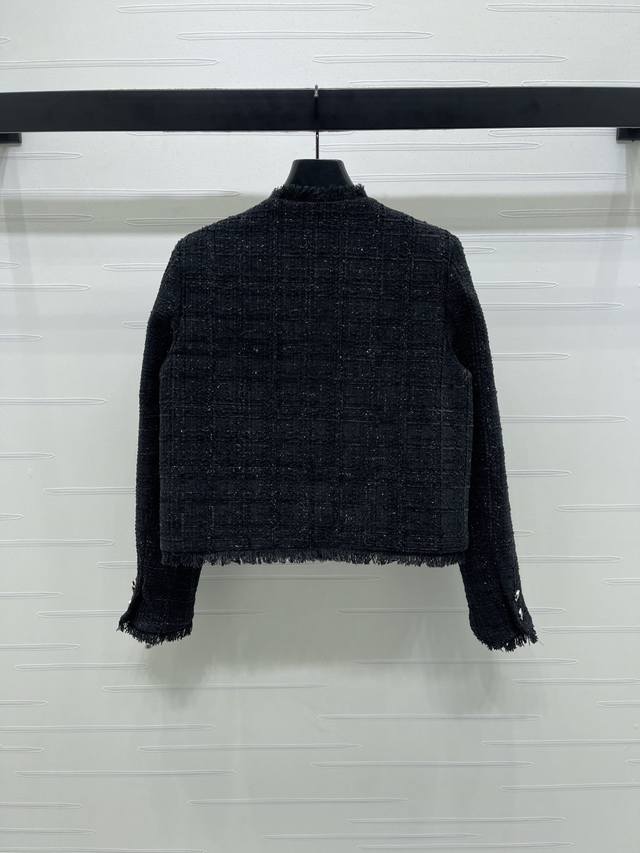 New, original, high-quality Chane* 2025 Early Fall collection! This woven fringed jacket! Custom-made, imported material with a noticeable, visible wool texture and premium quality. Round-neck, Chanel jacket with a single row of engraved buttons on the front and a double C brooch complementing the woven plaid fabric, creating a luxurious yet elegant look. The collar and cuffs extend to the front and hem, and the fringed trim is elegant and captivating, creating a rich, layered design. A stylish and sophisticated choice! One color! Sizes SM-L3! High-quality, bulky stock A706B580C
