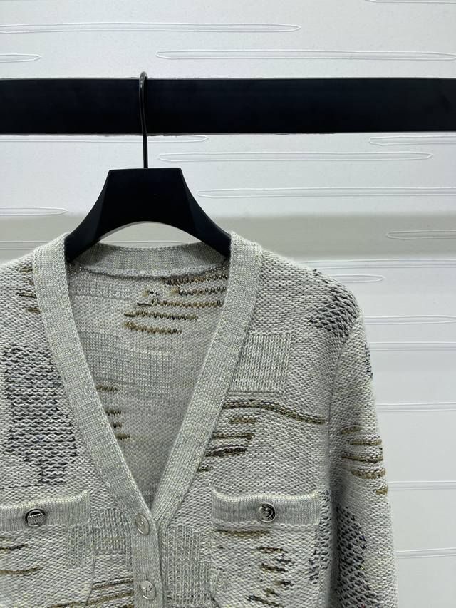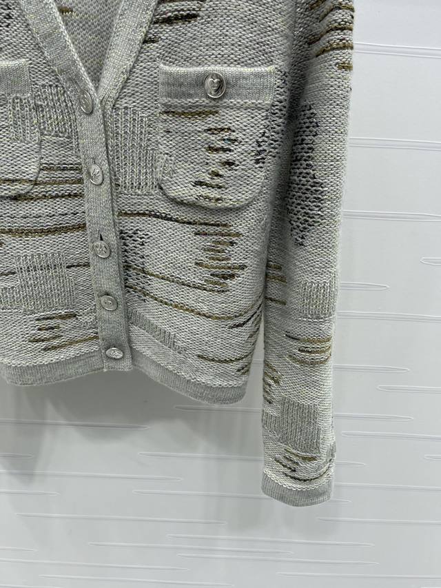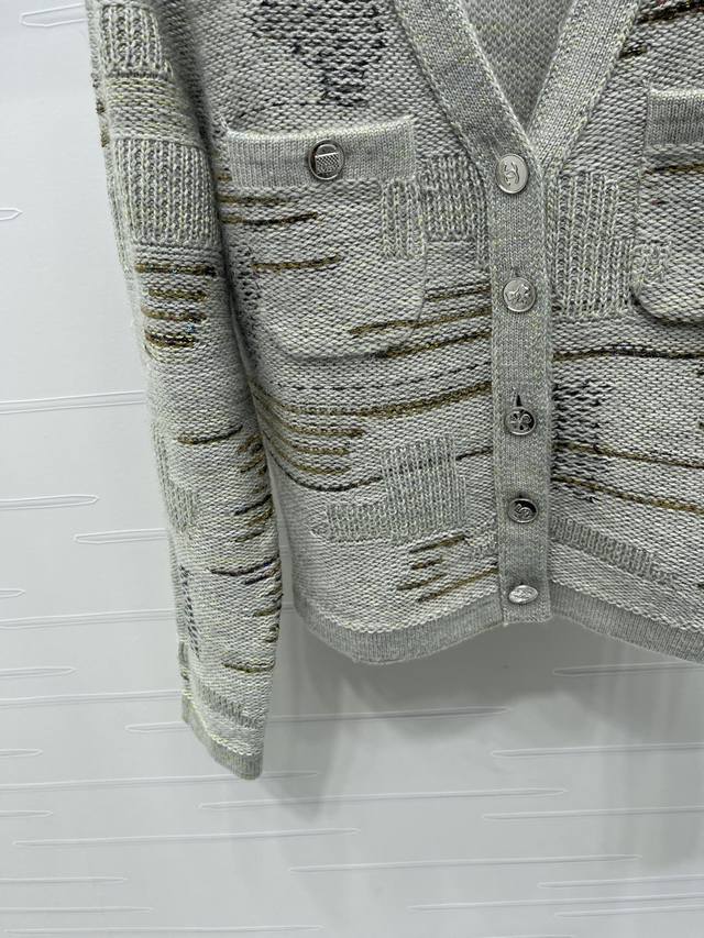 New, original, high-quality Chane* 2025 Early Fall collection! V-neck, long-sleeved knitted cardigan, available on the official website! Custom-made imported wool yarn, this premium V-neck long-sleeved cardigan features a stylish silhouette with Chanel-inspired buttons in various patterns, creating a signature ladylike look. Exquisite crochet textures interspersed with irregularly colored threads add layered detailing and a rich visual effect! 1 color! Sizes SM-L3! High-quality, bulk stock A706B510C