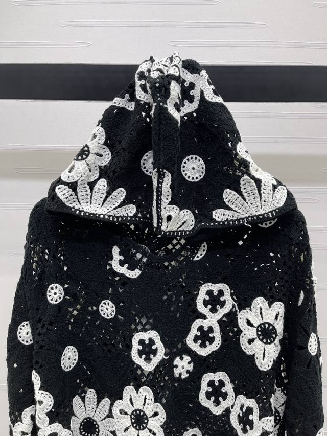 New, original, high-quality Chane* 2025 Early Fall collection! Water-soluble crochet embroidered hollow hooded long-sleeved top! Custom-woven from 100% cotton yarn, with a delicate, breathable and comfortable knit. Long-sleeved, all-over patterned with scattered circular patterns. Black and white crochet interweaving adds a stylish touch. Loose fit, versatile style for all ages and skin tones, creating a relaxed, holiday-inspired look. Perfect for a youthful, fashionable look! Available in 2 colors! Sizes SM-L3! High-quality, large-volume