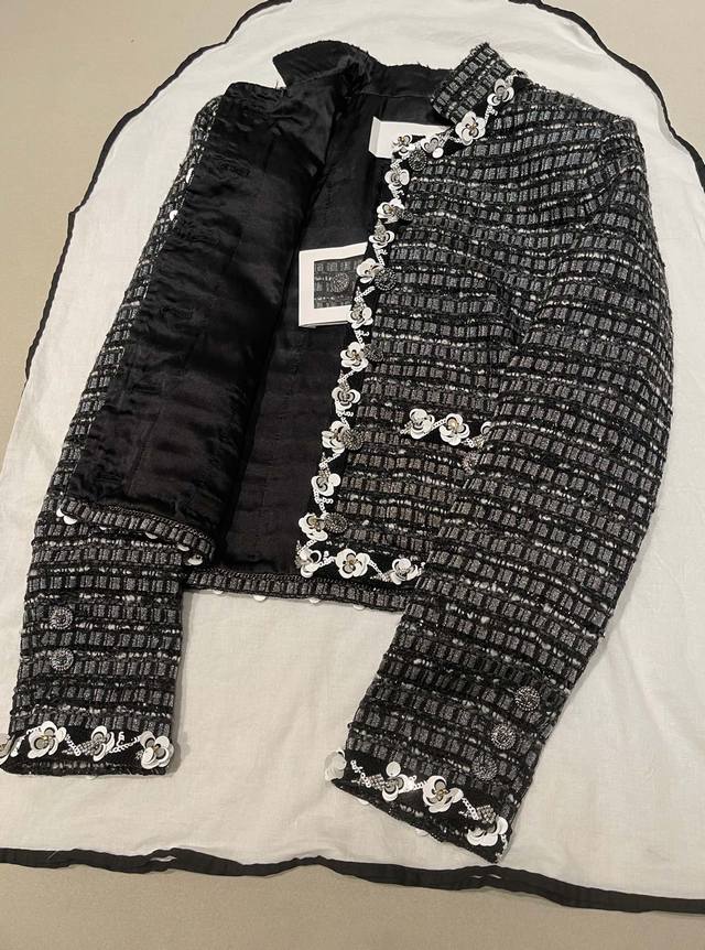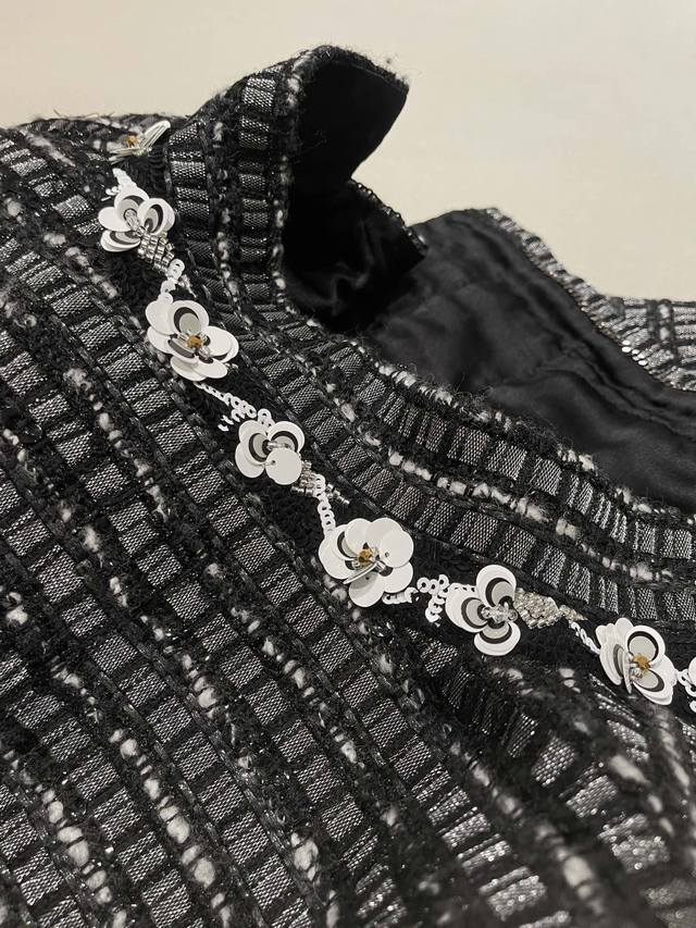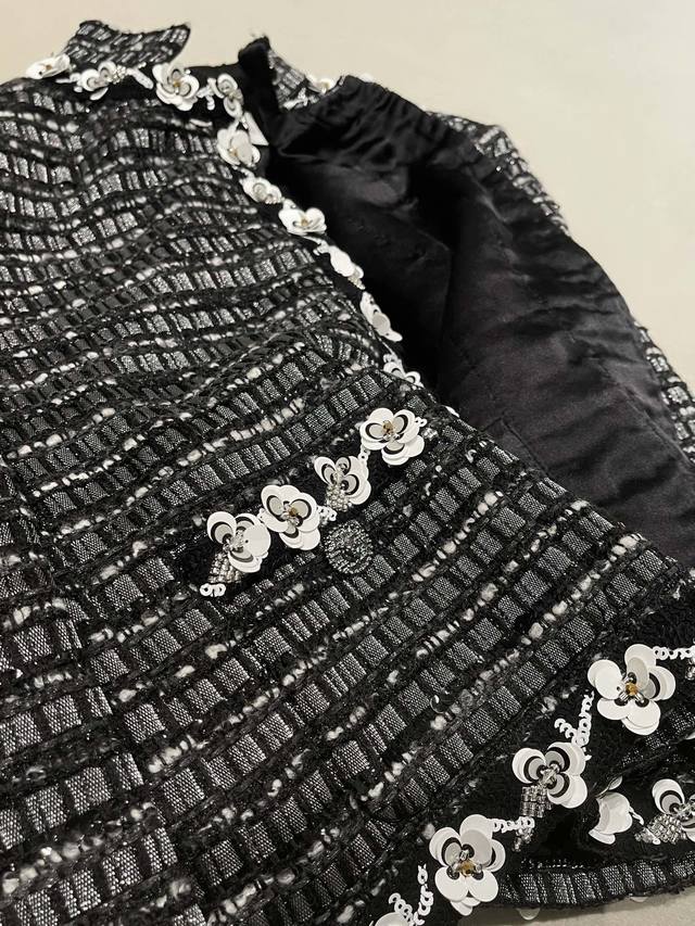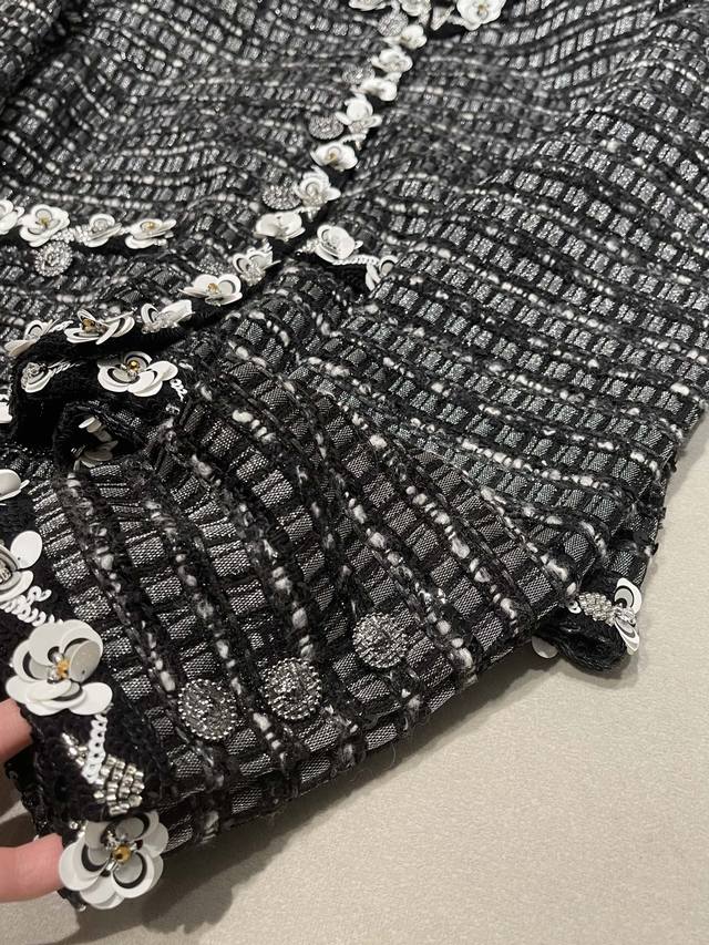 Sizes: 36 38 40 Chanel* 25 Haute Couture Series Heavy-Duty Beaded Sequined Tweed Jacket A must-have for fashionistas! Made in a top-tier export factory, using original custom-made tweed fabric with a rich texture! Every bead and sequin on the placket, collar, cuffs, and hem is meticulously hand-set, sparkling and shimmering