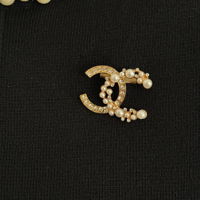 / Style No. 20254065 Chane* new style small logo brooch color matching hem pearl