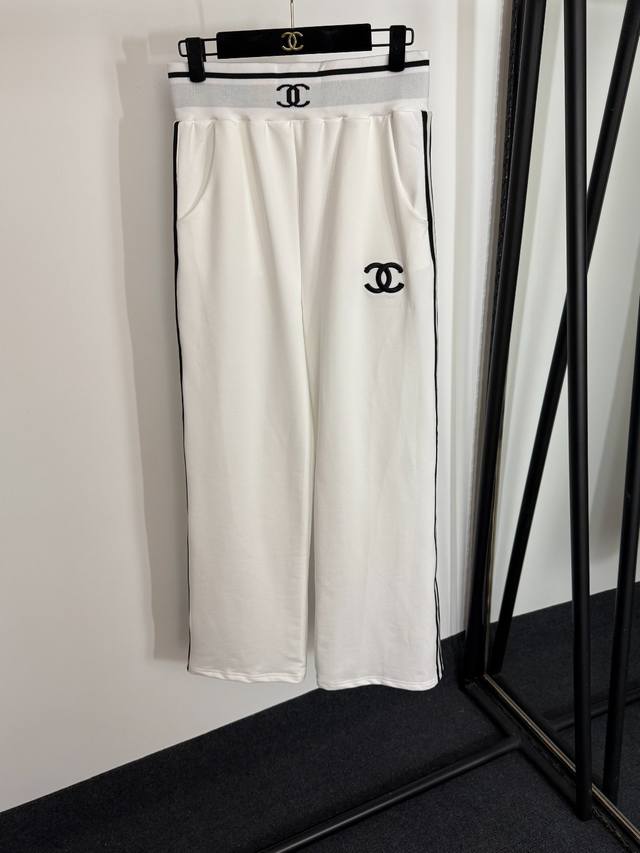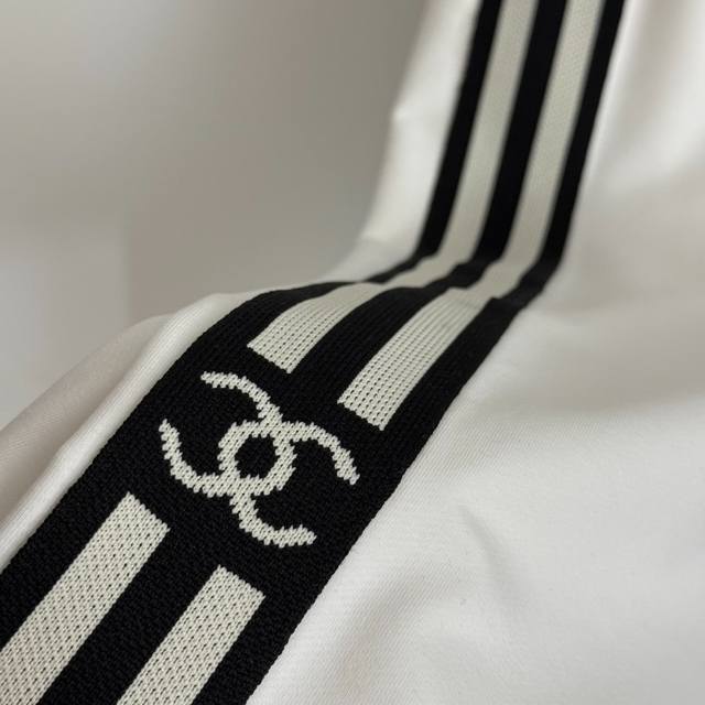 Style No. 20254378 Chane* newest sports suit, logo embroidered stand-up collar long-sleeved zipper jacket + casual trousers, white, blue, black, S-Xl, L; shoulder width 41, chest 104, sleeve length 58, length 60; waist 70 elastic, length 103