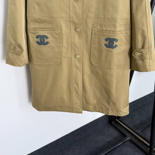 Style No. 20255227 Chane* new striped lining, logo patch, double pockets, long sleeves, long trench coat, khaki, Sml, M; chest 114, sleeve 69, length 91; weight: 0.730Kg.