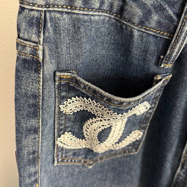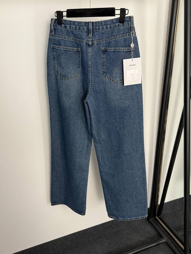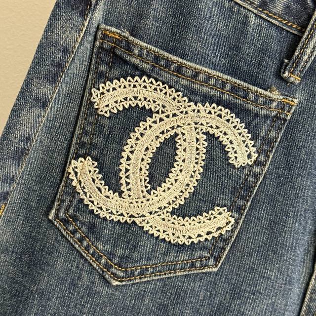 Style No. 20255286 Chanel* new Chanel logo embroidered pocket slimming and versatile straight-leg denim trousers, blue, Sml, M; waist circumference 72, length 106; weight: 0.600Kg