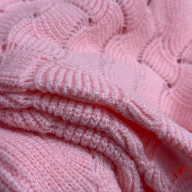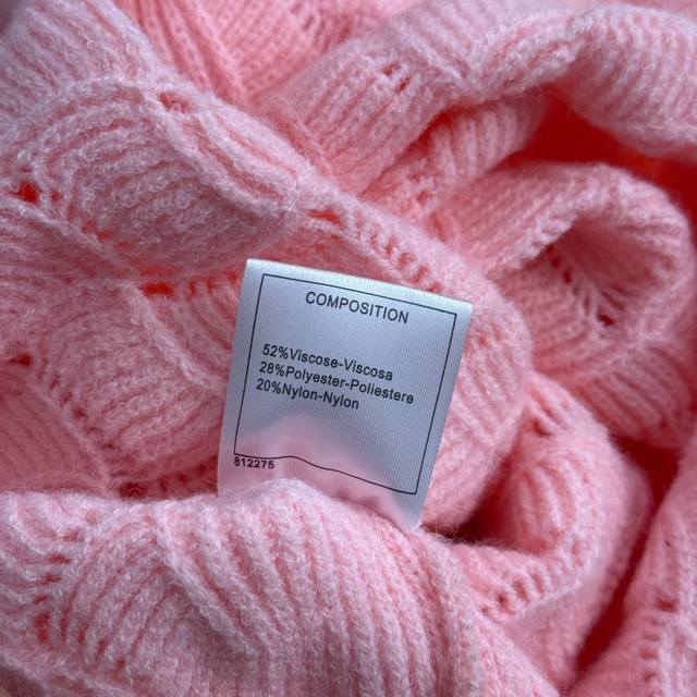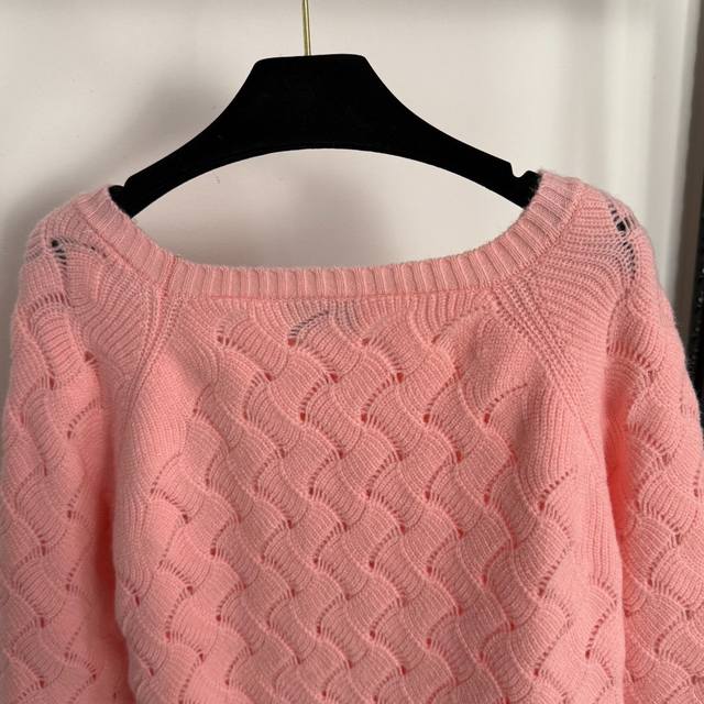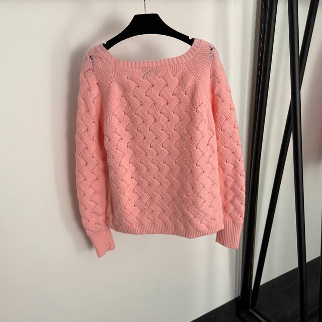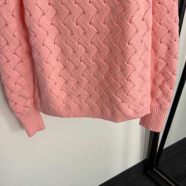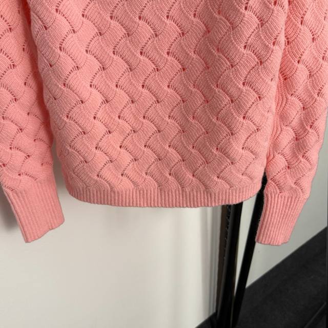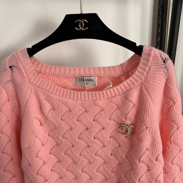 Style No. 20255311 Chane* new diamond logo brooch hollow long-sleeved sweater, pink, size 36 38 40; chest 96, sleeve length 63, length 57; weight: 0.405 kg.