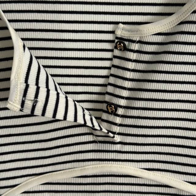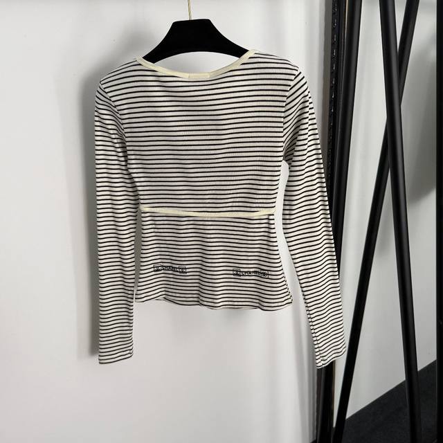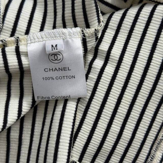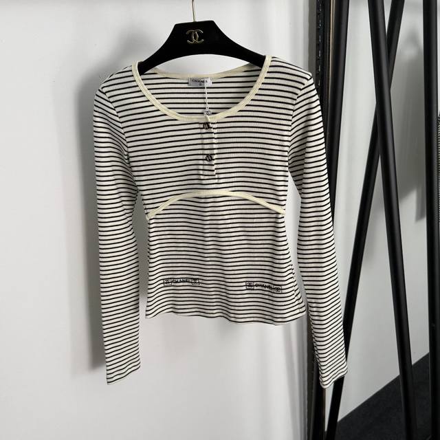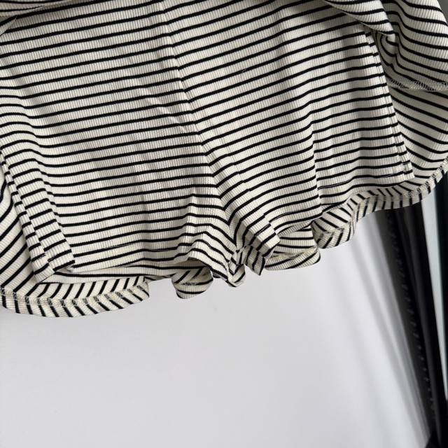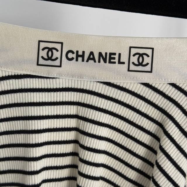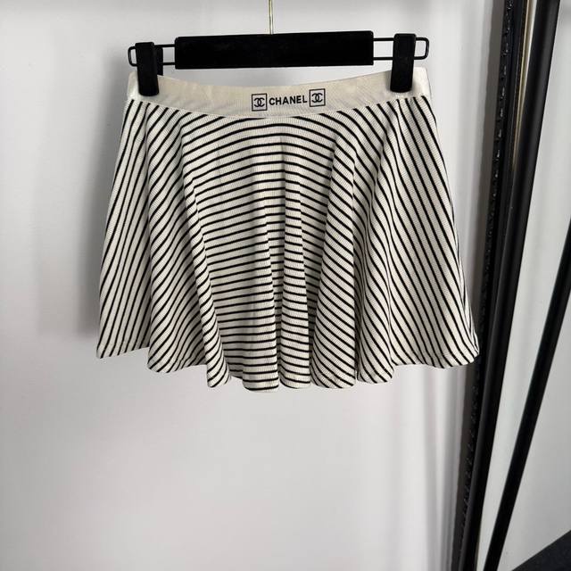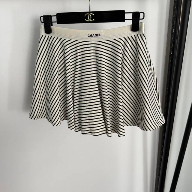 Style No. 20255347 Chane* newest set, Chanel logo letter print slim long-sleeved striped bottoming shirt top + short skirt, safety pants lining, white, black, Sml, M size; chest 70, sleeve length 60, length 49; waist 64 elastic, length 34; weight: 0.360Kg