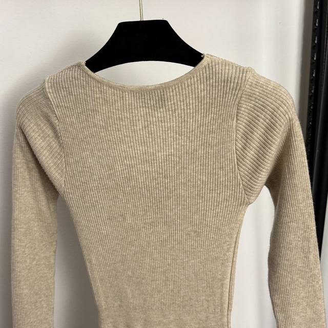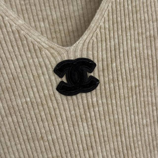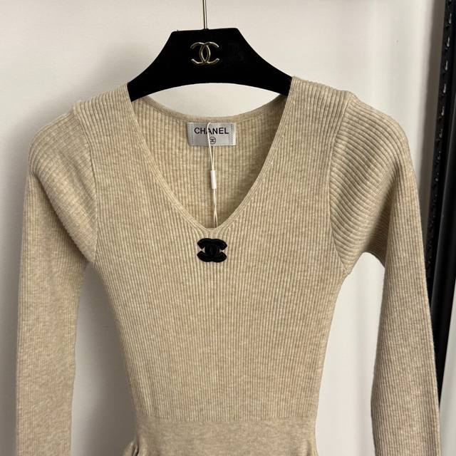 Style No. 20255859 Chane* new flocked logo patch V-neck waist knitted long-slee
