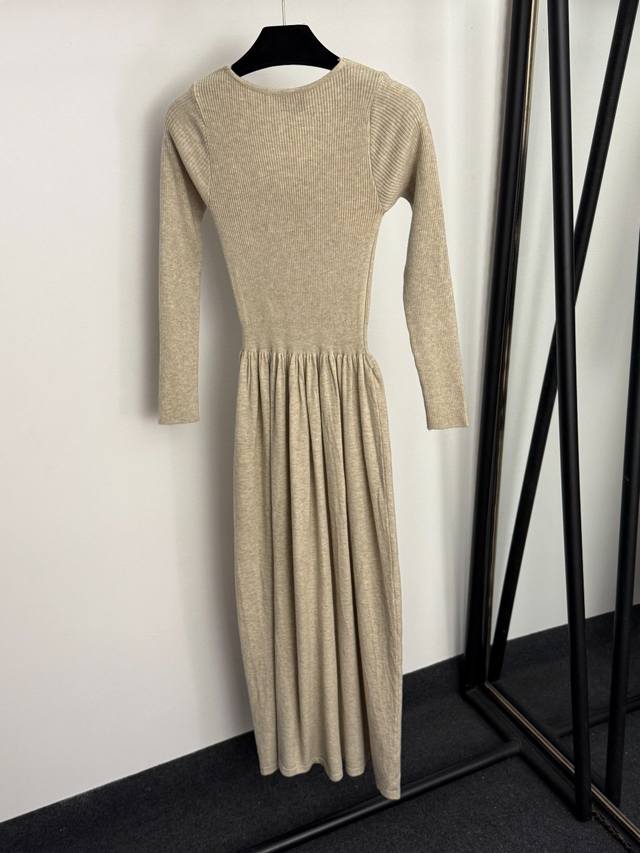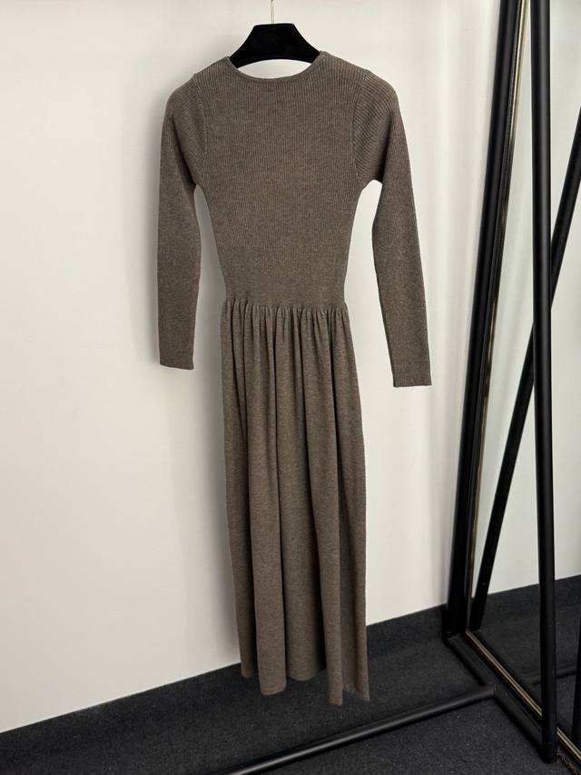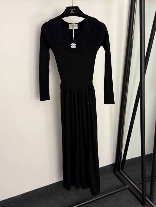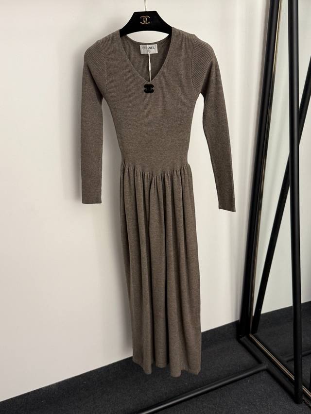 Style No. 20255859 Chanel* new flocked logo patch V-neck waist knitted long-sleeved bottoming dress, available in apricot, black, and coffee. One size fits all: chest 58, sleeve 54, length 124; Weight: 0.475Kg.