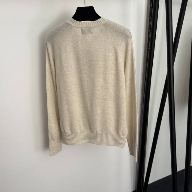 Style No. 20255872 Chane* new Chanel logo patch pullover long-sleeved sweater top, available in apricot, pink, coffee, and gray. One size fits all: chest 102, sleeve 70, length 58; weight: 0.175.