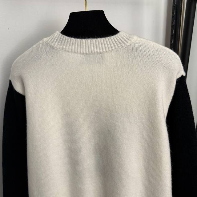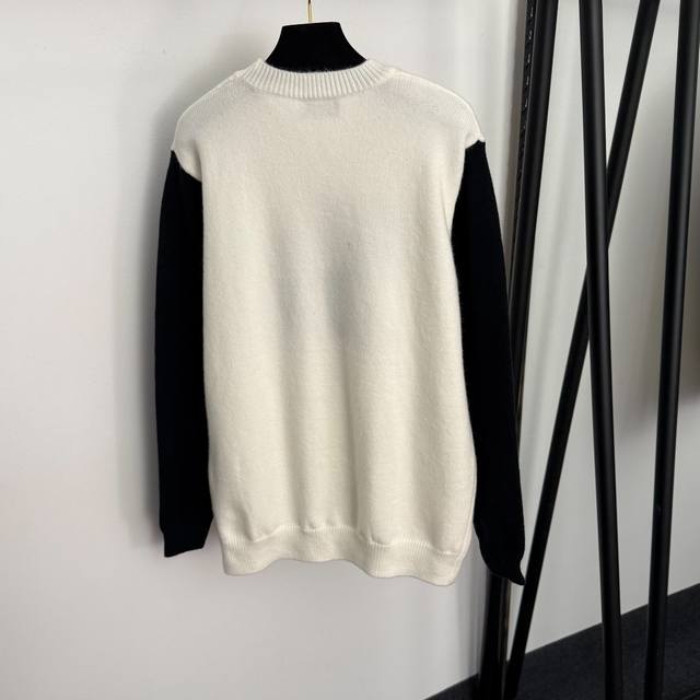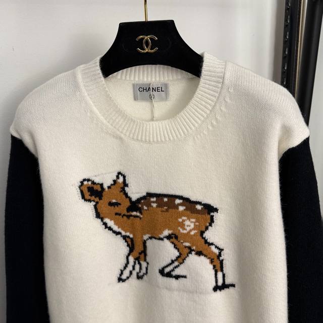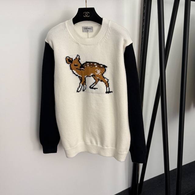 Style No. 20256917 Chanel* New Deer Color Block Long-Sleeve Pullover Knit Sweater, White, Black, One Size: Shoulder Width 43cm, Bust 108cm, Sleeve Length 63cm, Length 70cm; Weight: 0.550kg. (