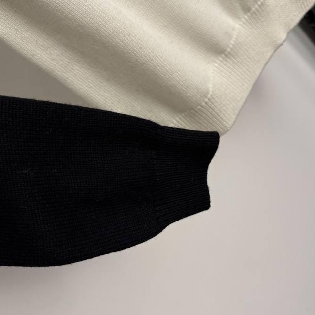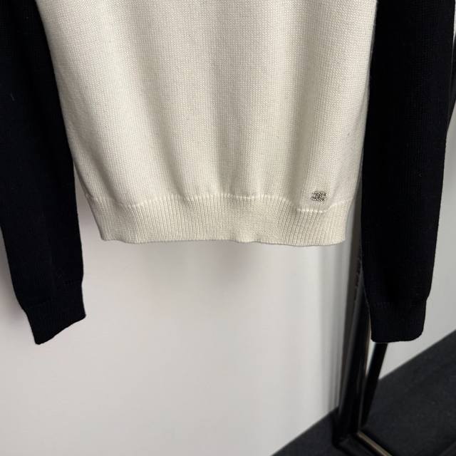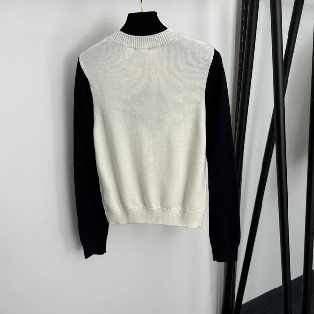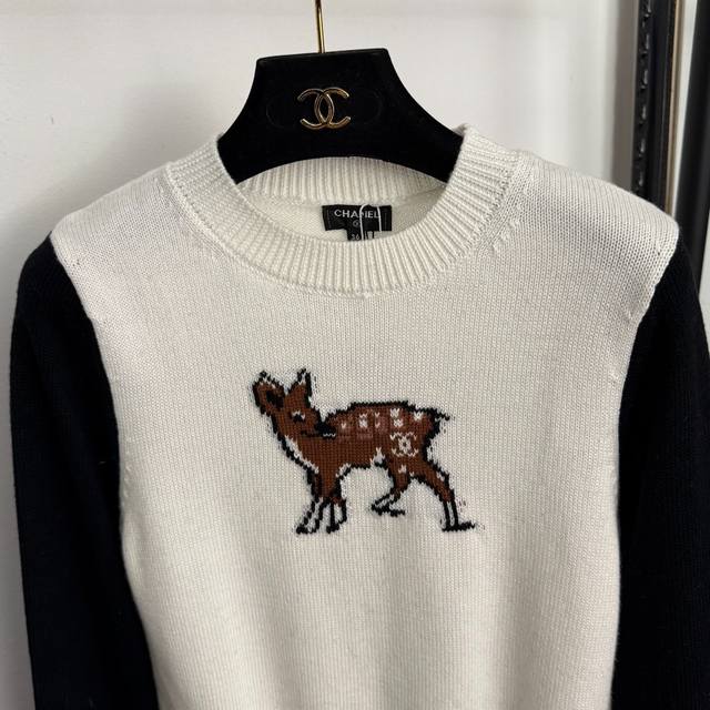 Style No. 20256929 Chanel* New Deer Color Block Long-Sleeve Pullover Wool Knit Sweater, White, Black, Sizes 36, 38, 40. Size 36: Bust 84cm, Sleeve Length 61cm, Length 52cm; Weight: 0.370kg. (