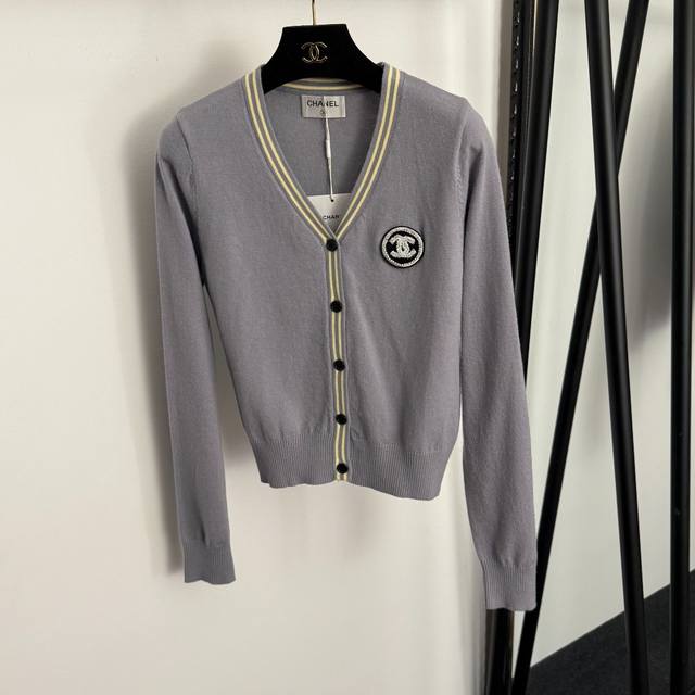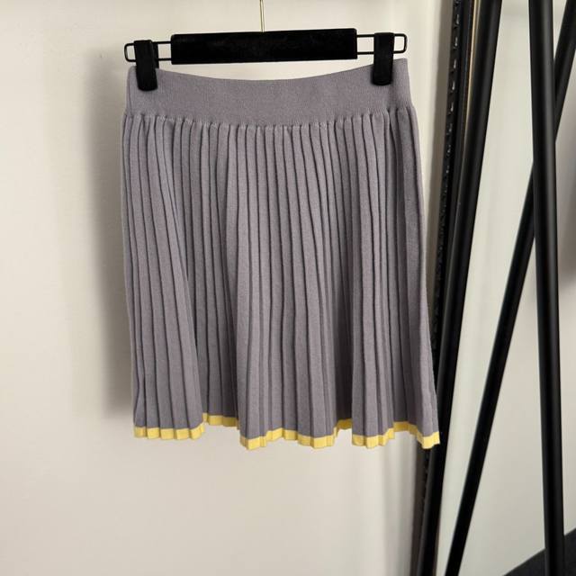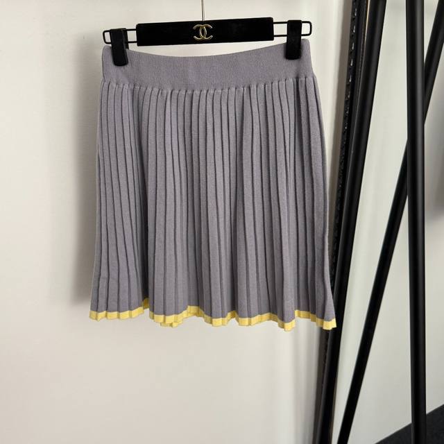 Style No. 20257351 Chanel* New Set: Chanel Beaded Logo Embroidered V-neck Long-sleeved Knit Cardigan + High-waisted Knit Pleated Mini Skirt, Grey, Blue, Sizes S, M, L. Size M: Bust 88cm, Sleeve Length 65cm, Length 51cm; Waist 62cm (elastic), Length 46cm; Weight: 0.480kg DDD