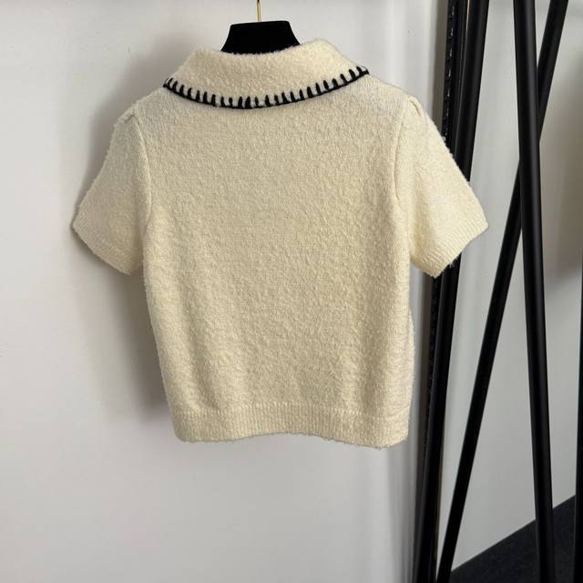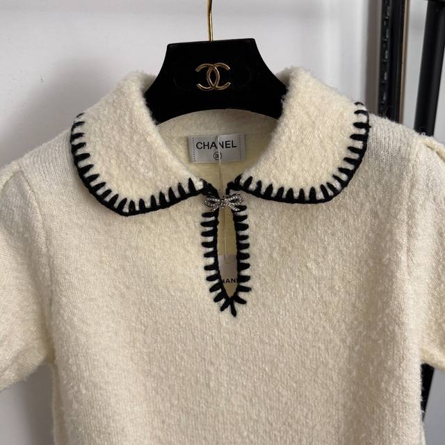 Style No. 20257674 Chanel* New Bow-Tie Peter Pan Collar Short-Sleeve Wool Knit Sweater, Apricot, Sizes S, M, L, M: Bust 90cm, Sleeve Length 20cm, Length 52cm; Weight: 0.350kg DDD