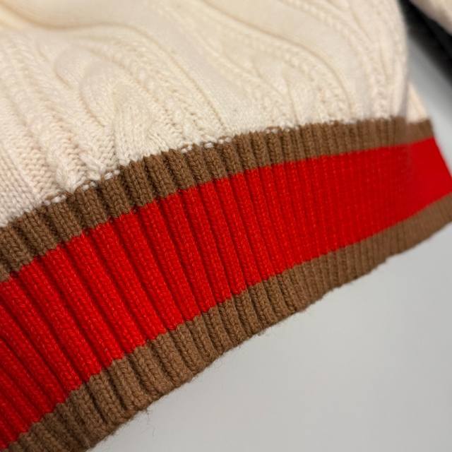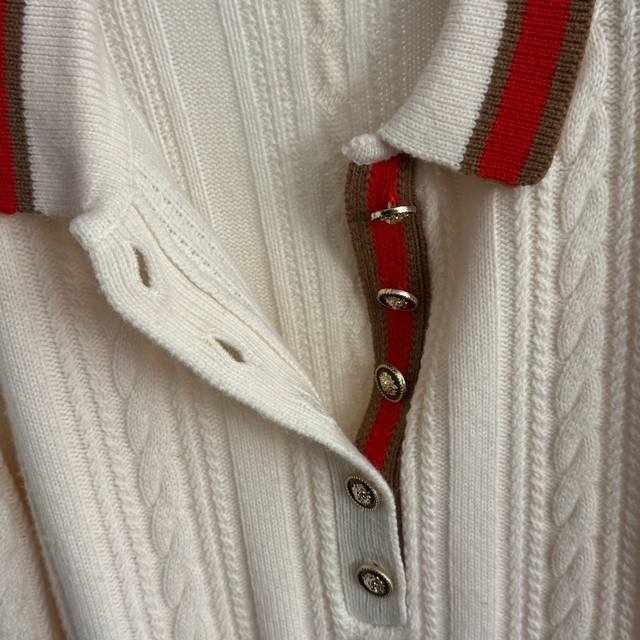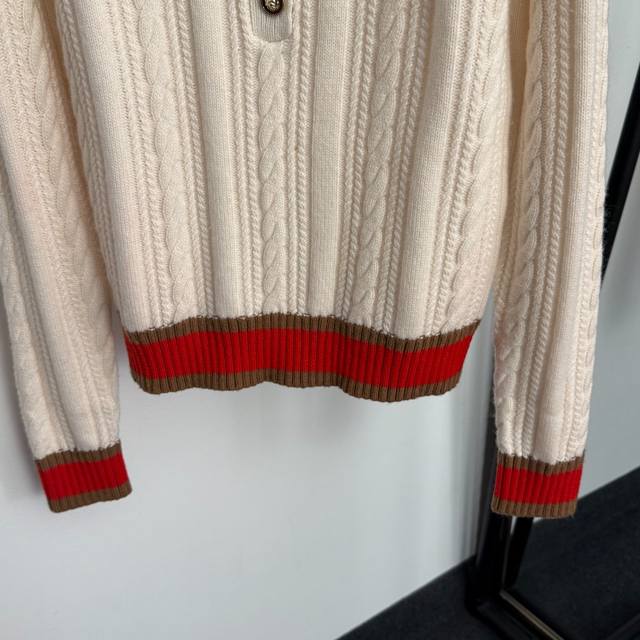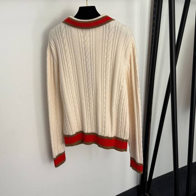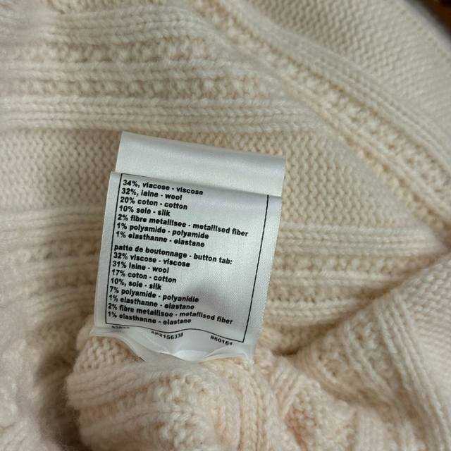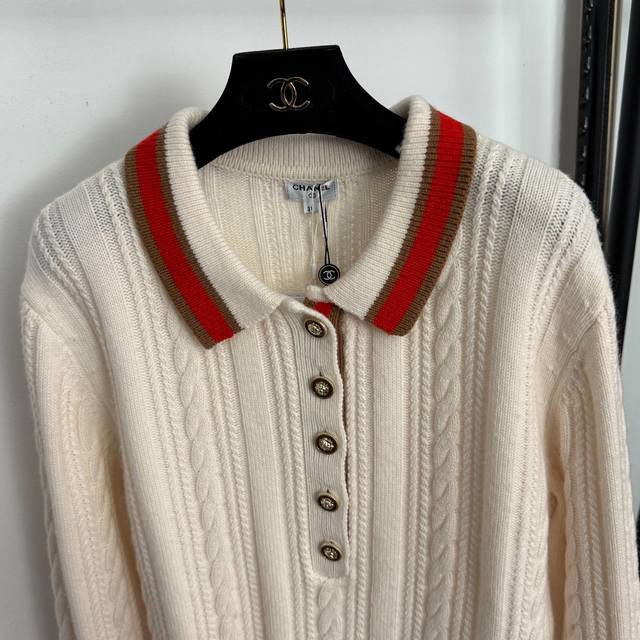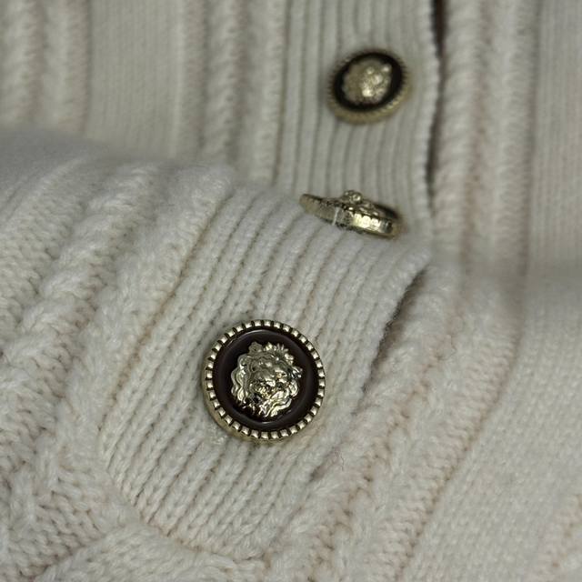 Style No. 20257676 Chanel *New Lion Head Button Cable Knit Striped Collar Long-Sleeve Knit Top, Apricot, Sizes 36, 38, 40. Size 38: Shoulder width 47cm, Bust 100cm, Sleeve length 67cm, Length 62cm; Weight: 0.610Kg DDD