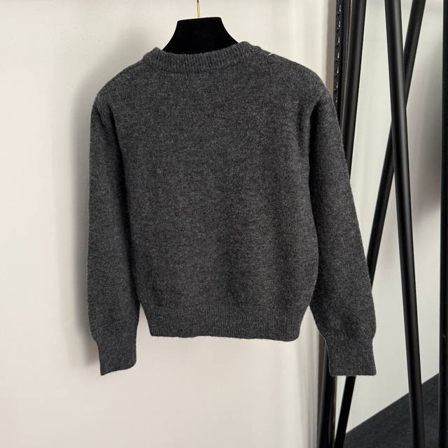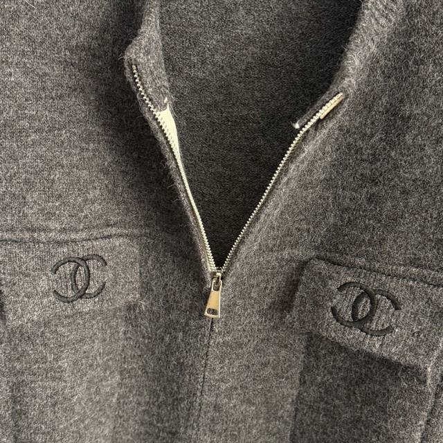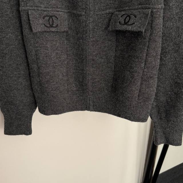 Style No. 20257802 Chanel* New Logo Embroidered Crew Neck Long Sleeve Zipper Knit Cardigan, Dark Grey, Red, Black, One Size: Shoulder Width 40cm, Bust 100cm, Sleeve Length 54cm, Length 51cm; Weight: 0.475Kg. DDD