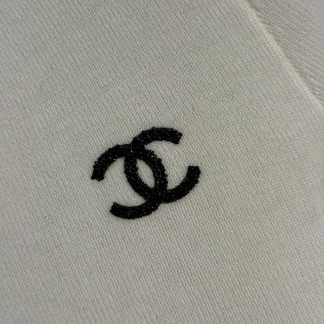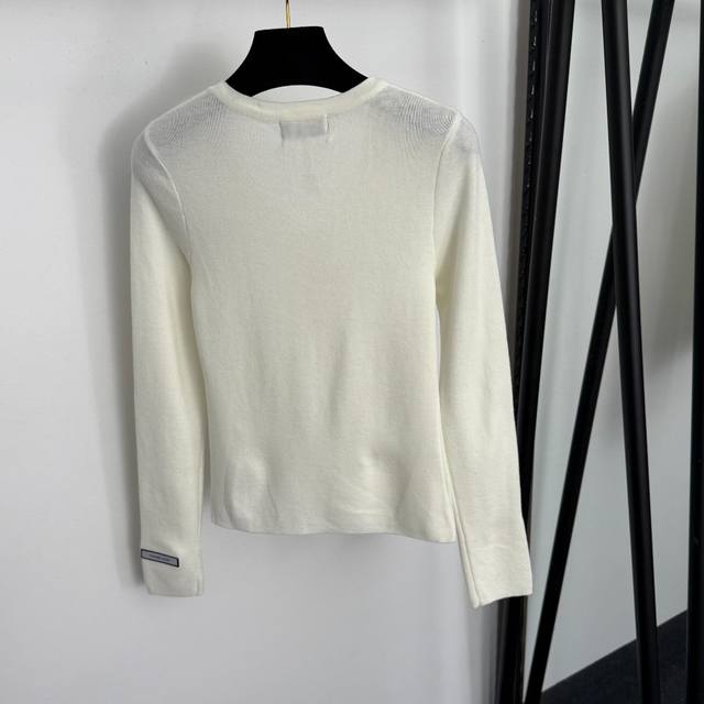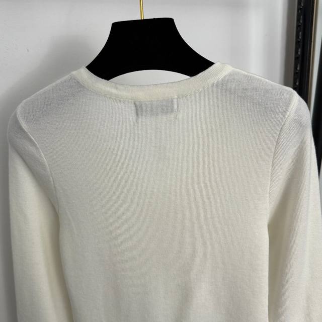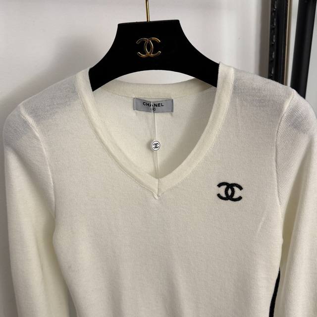 Style No. 20258321 Chanel* New Style Logo Rhinestone V-Neck Slim Fit Long Sleeve Knit Top, Off-White, Black, One Size: Bust 72cm, Sleeve Length 60cm, Length 53cm; Weight: 0.195kg. DDD