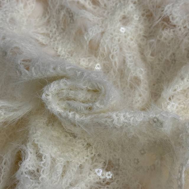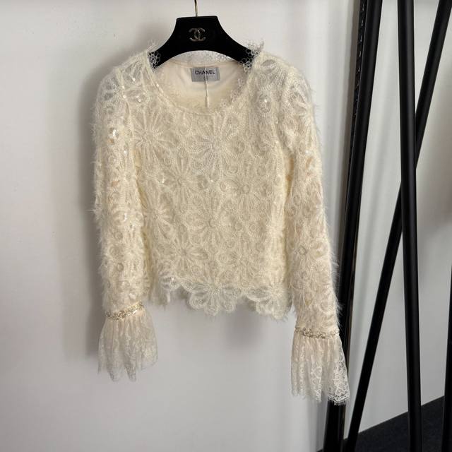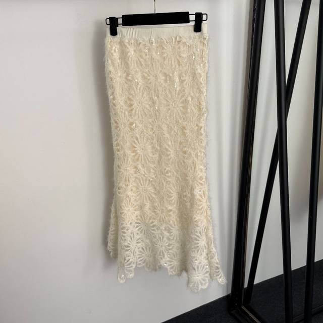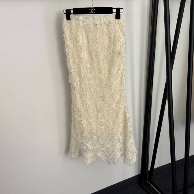 Style No. 20259261 Chanel* New Set: A Chanel-inspired sequined lace floral pearl beaded flared long-sleeved top + high-waisted skirt, off-white, sizes S-XL. Size S: Bust 76cm, Sleeve Length 62cm, Length 45cm; Waist 62cm (elastic), Length 90cm; Weight: 0.520kg. DDD