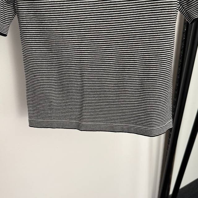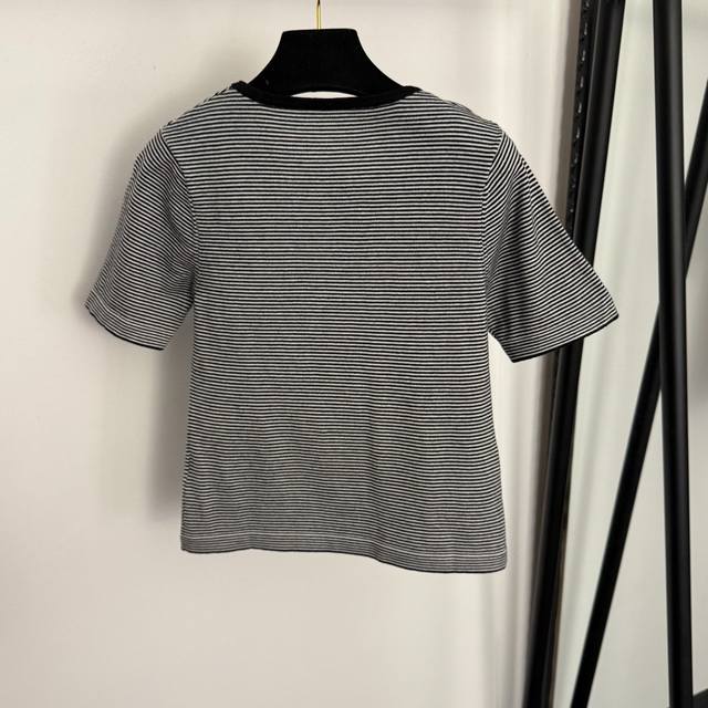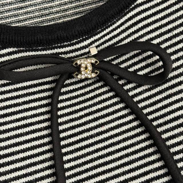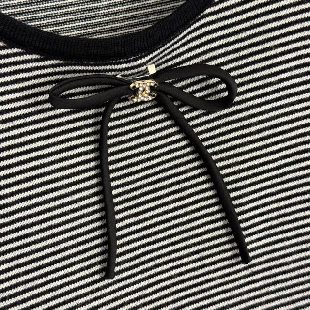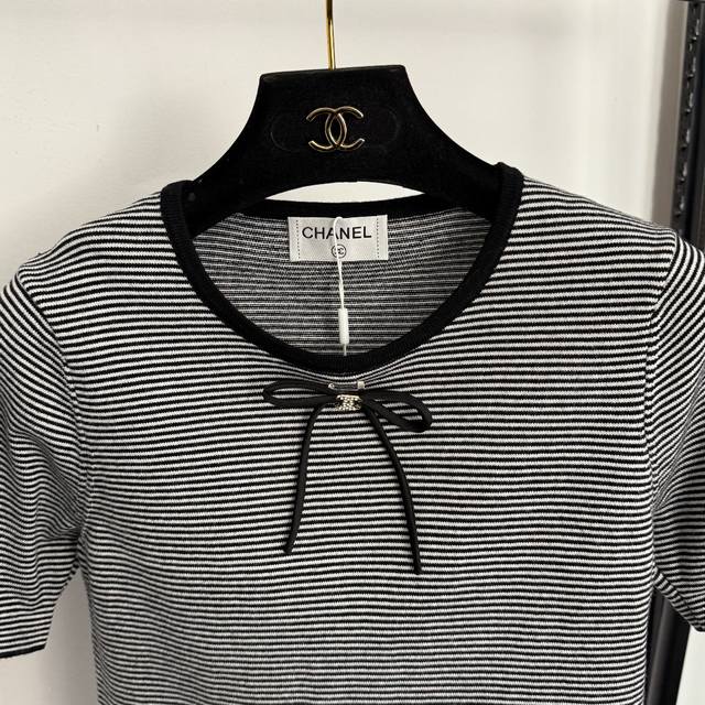/ Style No. 20259280 Chanel* New Bow-Tie Striped Short-Sleeve Knit T-Shirt, Black