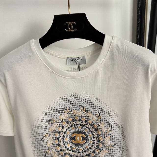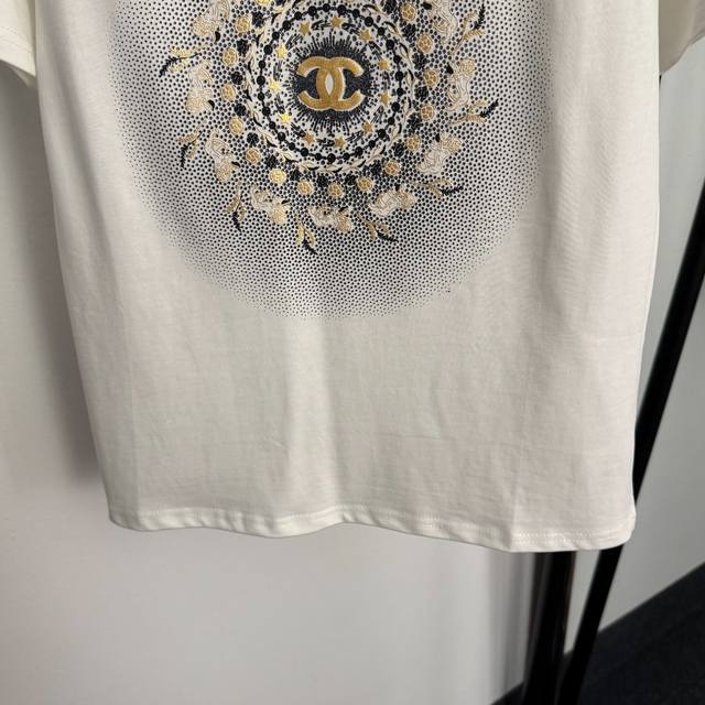Style No. 20259304 Chanel* New Logo Five-Pointed Star Animal Gold Foil Print Short-Sleeve T-Shirt, White, Black, Sizes S, M, L. Size M: Shoulder Width 41cm, Chest 90cm, Sleeve Length 15cm, Length 59cm; Weight: 0.180kg DDD