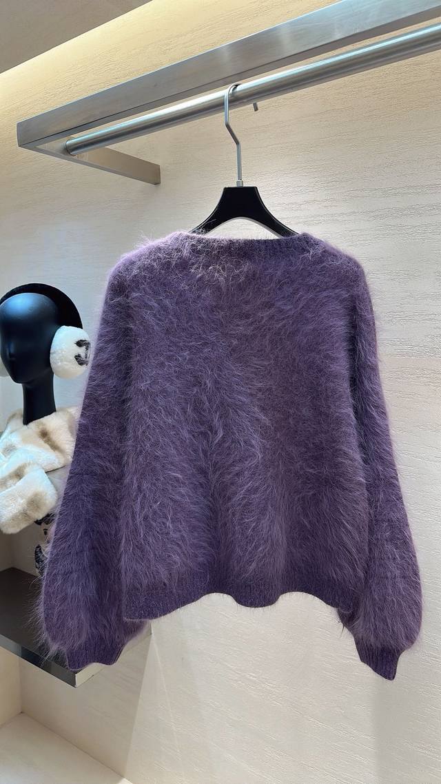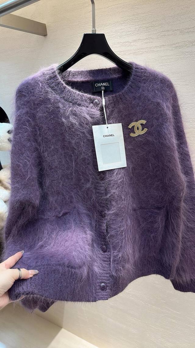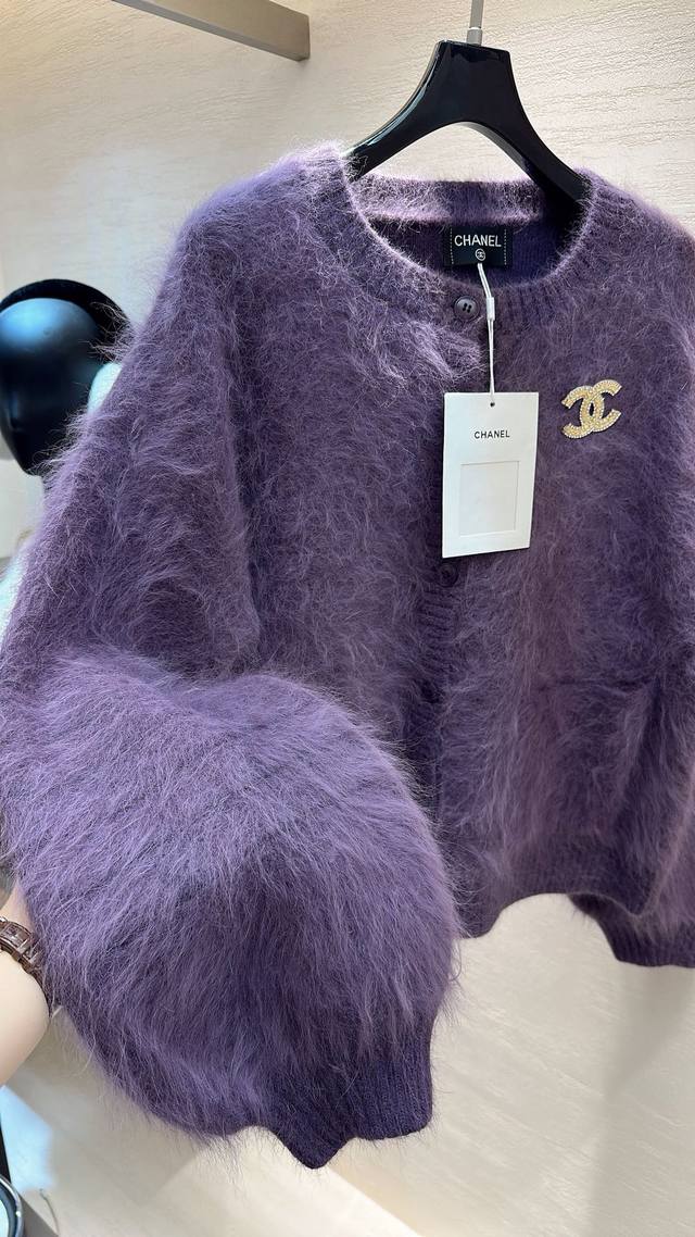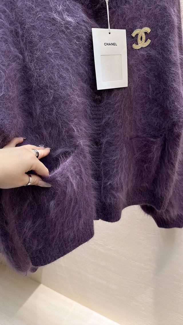 This Chanel mink cardigan is a perfect blend of luxury and gentleness. The fluffy down feels like a cloud, the classic double-C logo sparkles with rhinestones, and the round neck and pockets exude French elegance. Every inch of mink down speaks of sophistication. Wearing it is like draping yourself in the exquisite craftsmanship of Parisian haute couture, making every gesture exude elegance. Sizes: S, M, D, D