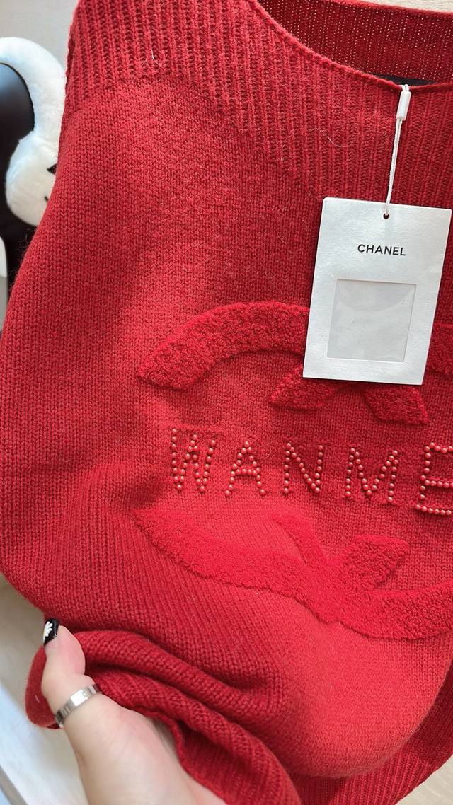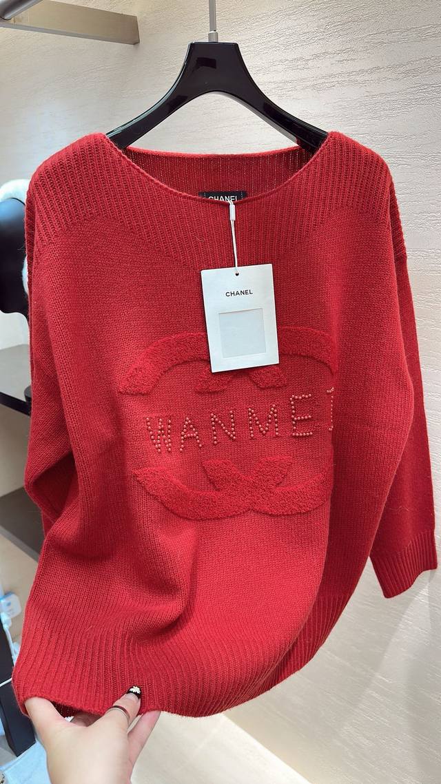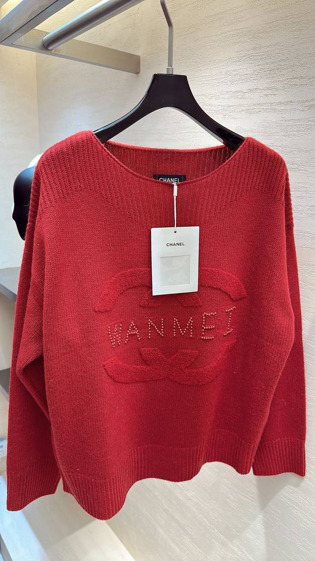This Chanel soft and cozy sweater has an inherently sweet and feminine charm. The double C pattern and "Wanmei" lettering add a touch of sophistication and subtle detail. The relaxed fit creates a comfortable and relaxed feel, making you feel like you're wearing a marshmallow in autumn and winter. Sizes: S, M, D, D