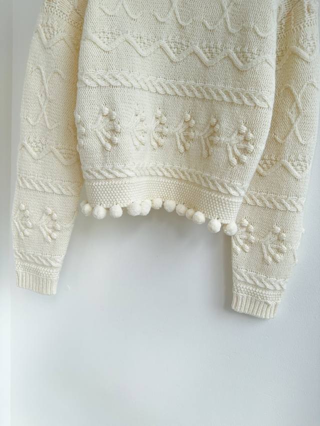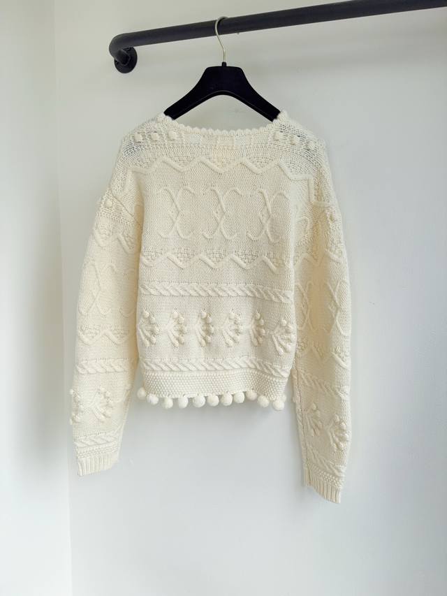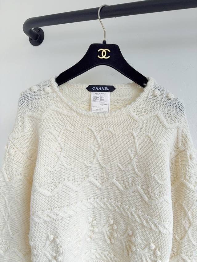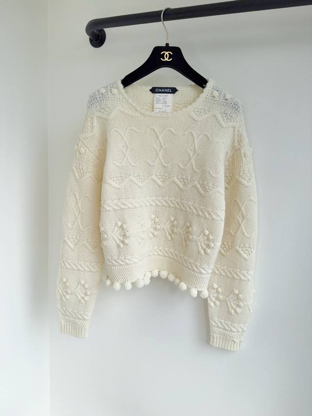 Top-quality cashmere Chane*25 vintage new style, 16-gauge fine splicing 3D crochet craftsmanship, solid color lace trim, round neck knit pullover top, incredibly slimming 3D jacquard design, understated yet sophisticated classic cut, comfortable and skin-friendly, versatile style, youthful and elegant, excellent workmanship and quality. Sizes 36, 38, 40.