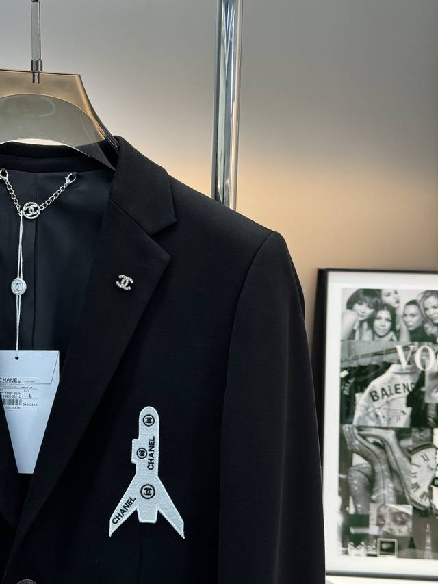 Chane*25S Casual Suit Jacket - Hot Selling Item, Recommended by Foreign Trade Company! Original Airplane Embroidery on the Chest. Chanel-style Hardware on the Collar. Exquisite and High-End! Imported Original Four-Way Stretch Fabric, Crisp and Draped, the entire garment features neat and even stitching. All hardware buttons and accessories are top-quality, custom-supplied with the logo. It's clearly high-end fabric. This type of fabric is custom-woven! A high-quality product from a reputable factory! Very practical. Sizes: M-3XL, Slim Fit 4XL, Custom Made Available. 175cm, 150kg: XL recommended.