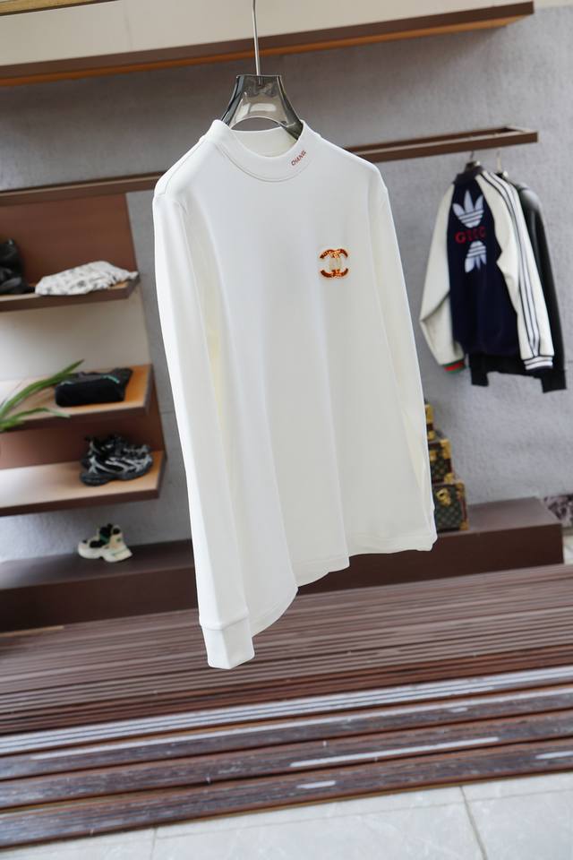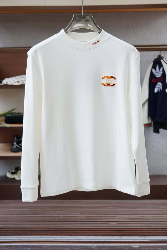 Chanel - Chanel - 2025 Fall/Winter New Arrivals, a basic men's round-neck long-sleeved T-shirt with classic logo embroidery on the chest! Available through trading company channels and simultaneously on Gw, this piece is made from imported 26S double-yarn pure cotton. The fabric is moderately thick, soft, dense, crisp, and drapes smoothly against the skin, offering excellent breathability and moisture absorption. It features matching ribbed neckline and cuffs dyed in the same color, maximizing comfort. The classic logo embroidery on the chest complements the offset-printed logo on the left cuff, a symbol of quality. The slim fit is very refined, creating a powerful presence while highlighting the refined elegance of a business man. This is its uniqueness, with a perfectly slim fit that looks stunning on the body. Sizes: 48 M-56 3Xl D DD