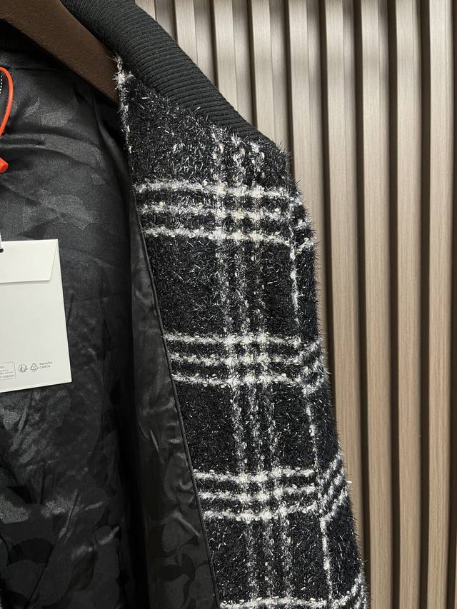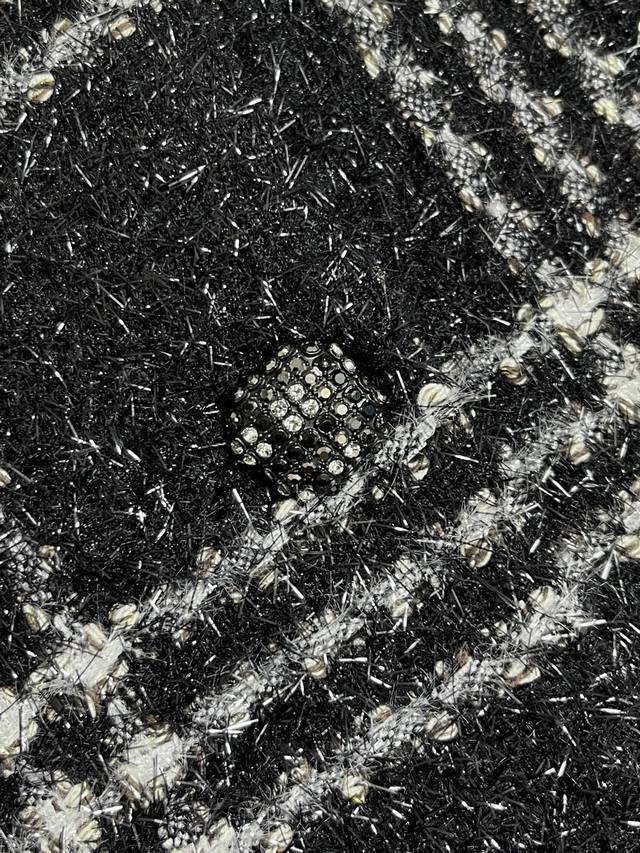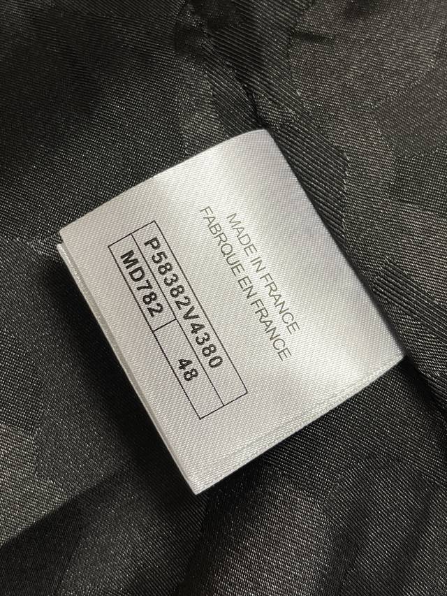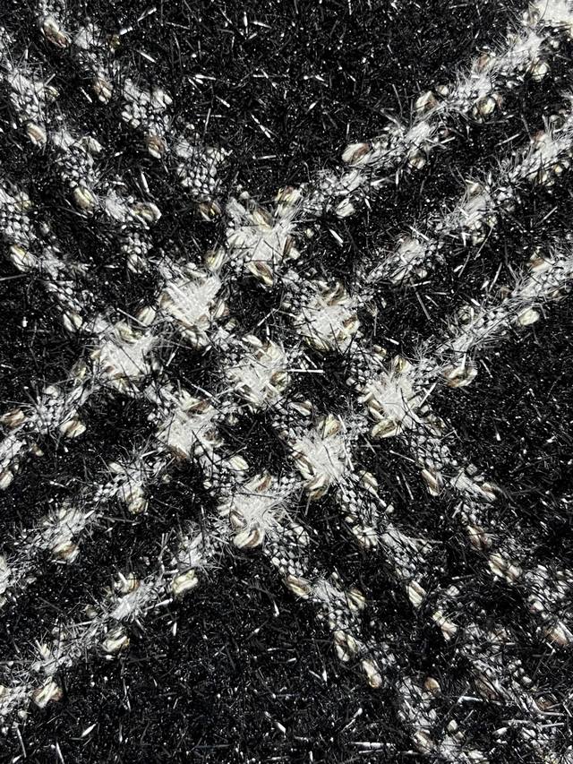 Chanel checked single-breasted jacket, custom-made with fine worsted wool, a shimmering yarn check pattern, and a logo-inspired rayon jacquard lining. The jacket's texture is exceptional and comfortable, nestling snugly against the skin. The pure black and white tones create a retro silhouette, with shimmering yarns interwoven between the check pattern. The delicate, ornate, regular lines create a geometric aesthetic. The single-breasted jacket, like a row of exquisite medals, exudes a charming aura of elegance and nobility, shimmering with a delicate and captivating luster in the play of light and shadow. A work of art embodying the philosophy of fashion, the ergonomically shaped tailoring harks back to traditional craftsmanship, employing splitting, folding, shrinking, and stretching techniques. The so-called "slow work, fine detail" reflects respect for the material and the pursuit of hand feel. The workmanship is complex, time-consuming, and requires high quality. The template machine uses a pre-set template to guide the opening position, shape, and size, ensuring precise and high-quality results. The garment wash and softening deodorization process uses specialized washing equipment and specific detergents to deeply clean and deodorize garments, improving their feel and appearance. Sizes: 46-52 S-Xl