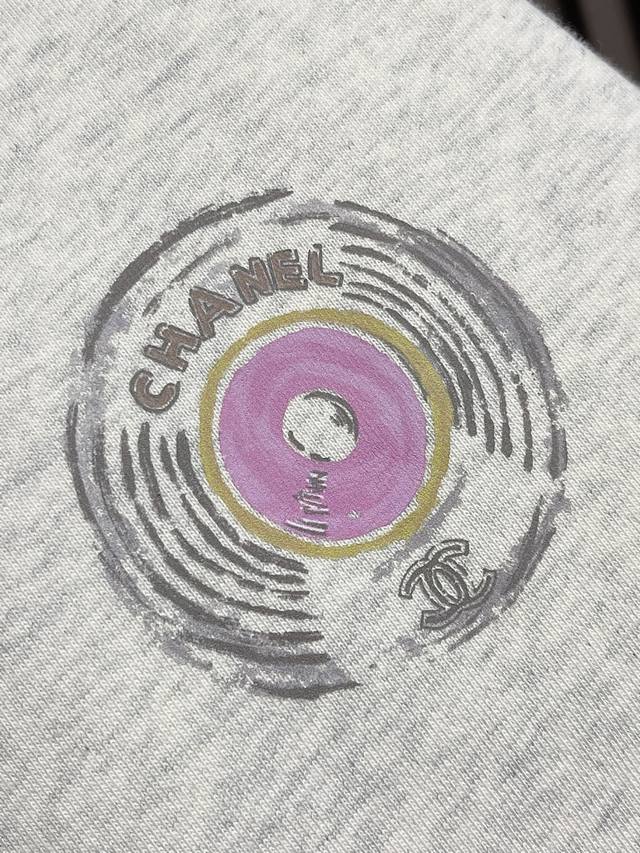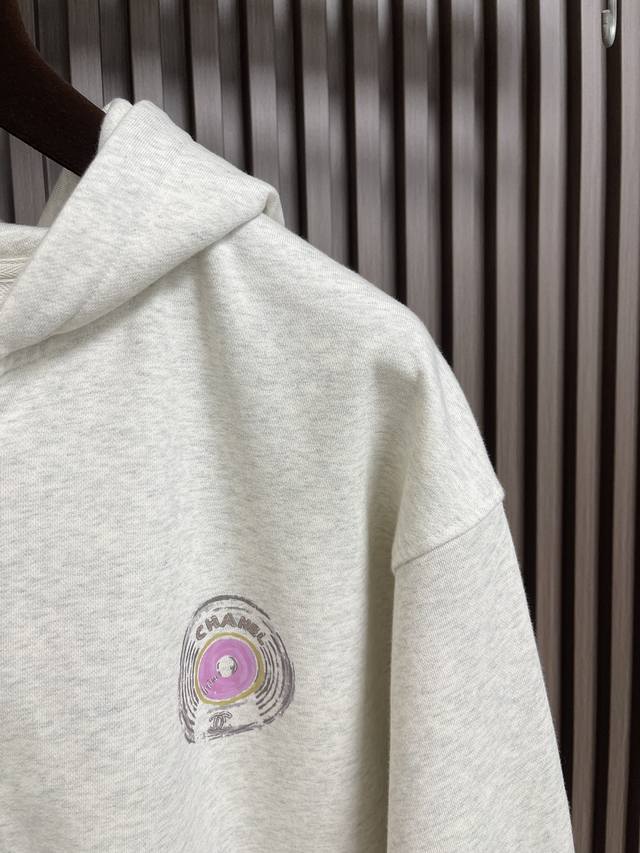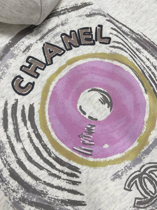 Chanel's new minimalist logo graffiti collection for early fall 2025, featuring a minimalist letter print and zip-up hoodie. This 32-count double-strand piece is available. The fabric weighs approximately 240g after washing, providing a wonderful feel. Available in unisex sizes.
