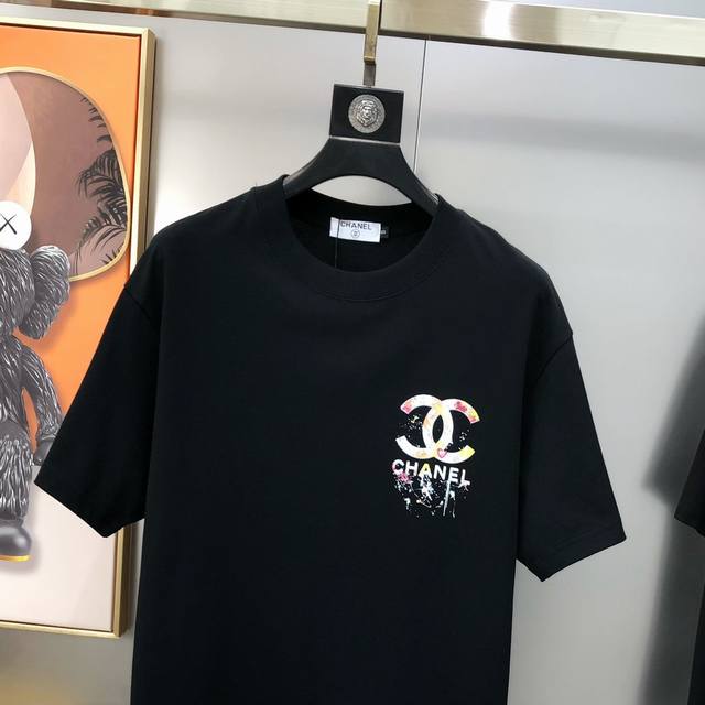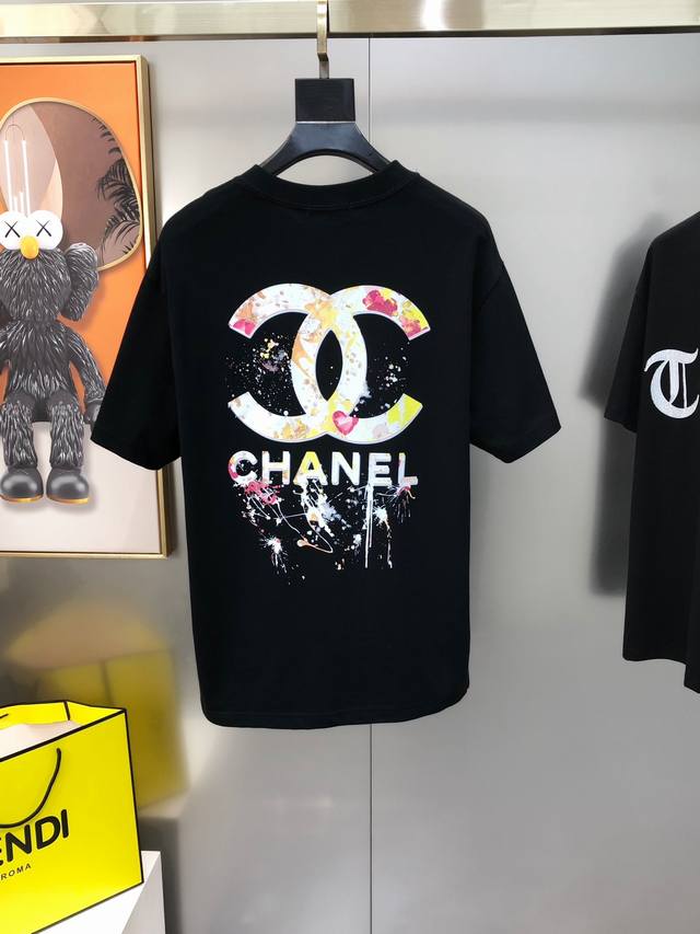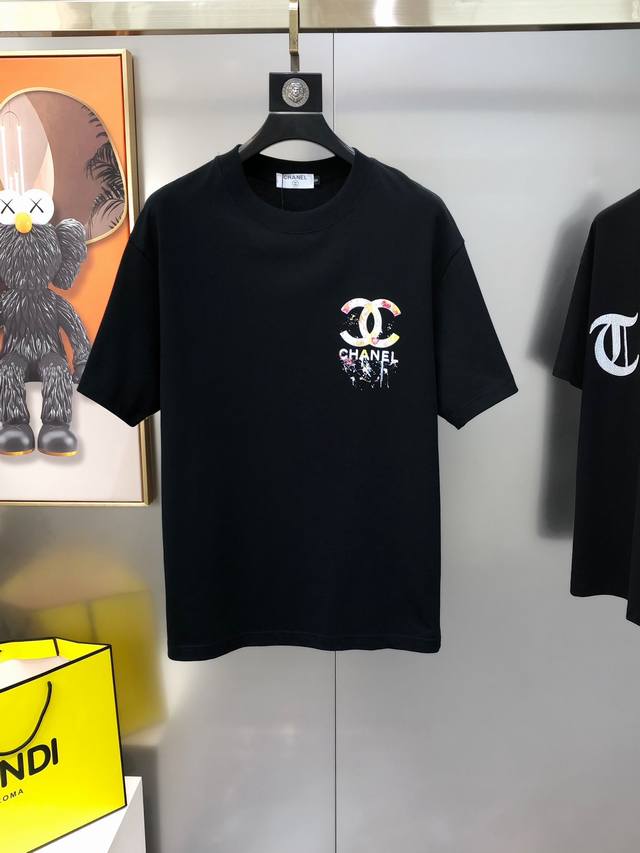 Ch*Nel Chanel spring and summer new original men's round neck short-sleeved T-shirt, sold simultaneously in the counter. High-end quality, high version, OST version, wide version, fashionable and versatile, popular custom-made, imported double-strand 100% cotton fabric, printed letter logo pattern on the front and back of the chest, soft and delicate feel, skin-friendly and comfortable to wear, fine workmanship from the OEM factory, very handsome and stylish upper body, a must-have item for men, size: S-2Xl, slightly large, the largest size can fit about 200 pounds, please state your height and weight when placing an order, and it will be shipped the next day. Black and white