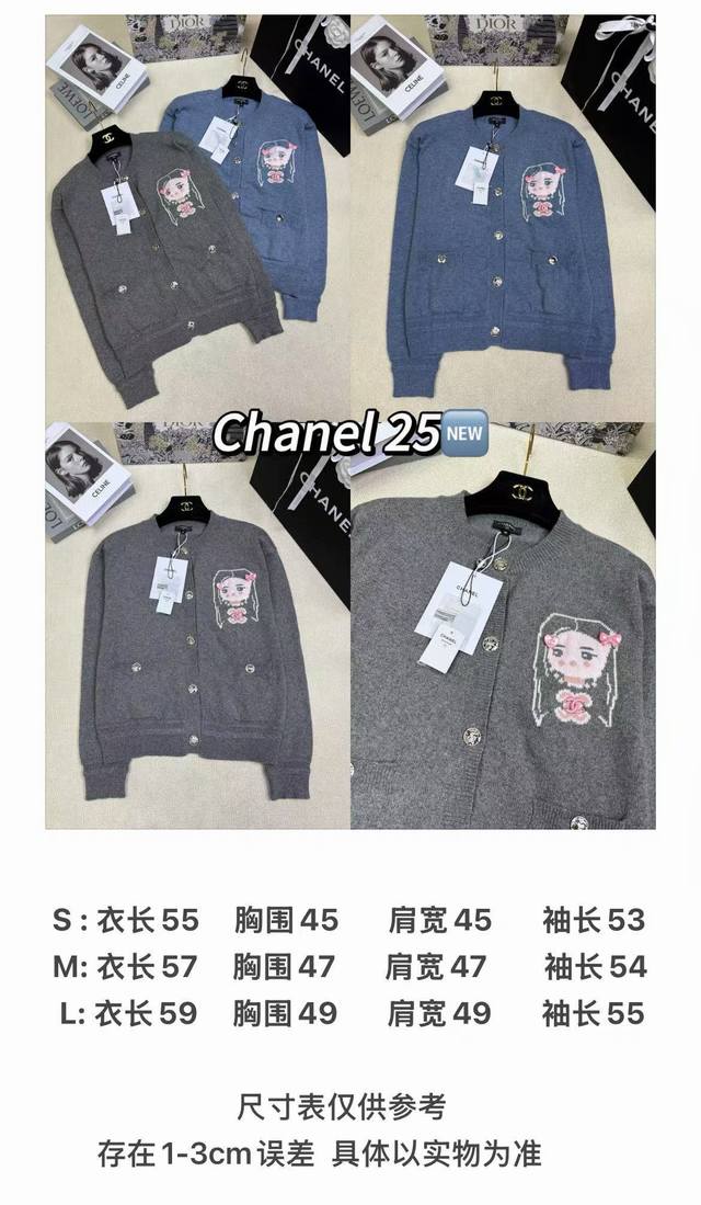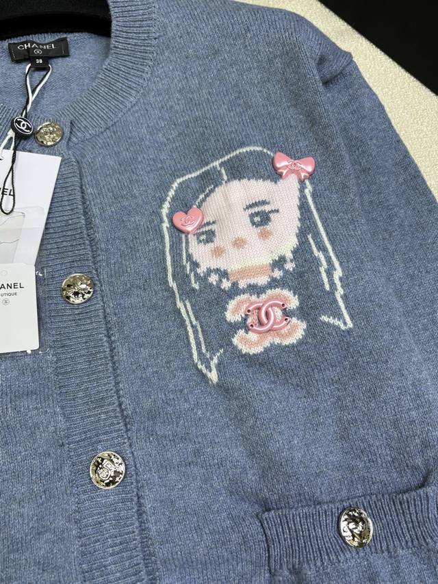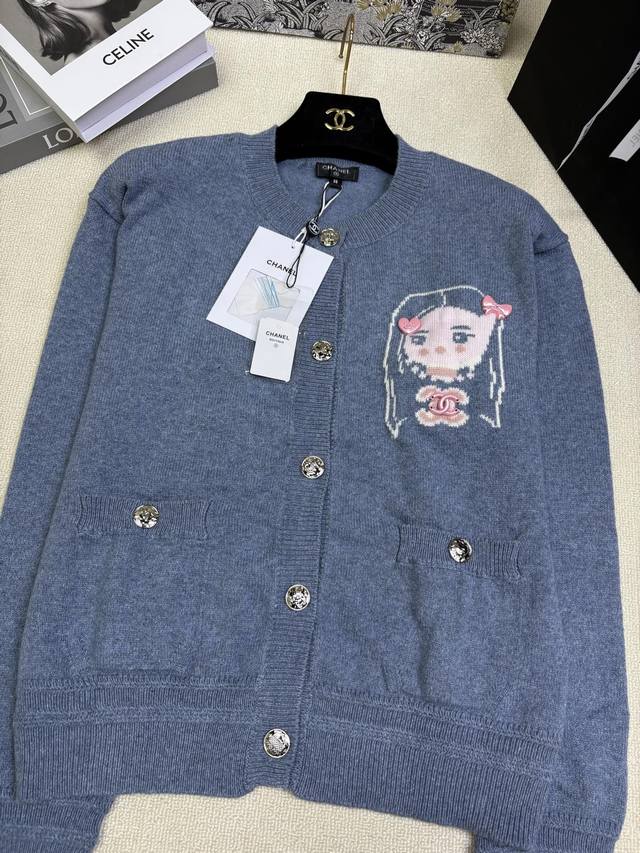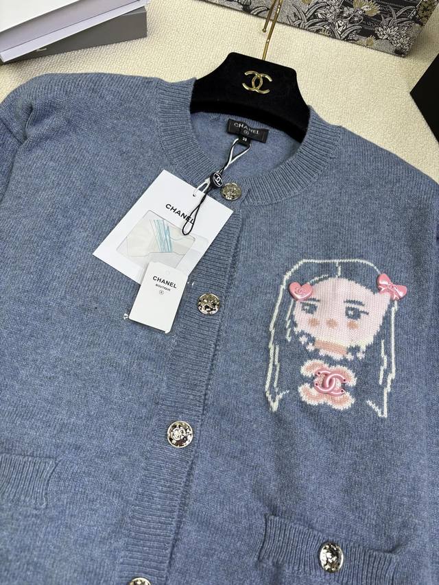 Chane*25 Autumn/Winter New Knitted Crew Neck Cardigan Classic Brand Cartoon Character Logo Hardware Decoration Yb Mold Opening Logo Metal Button Embellishment High-end Fashionable Exquisite Versatile Sizes Sml