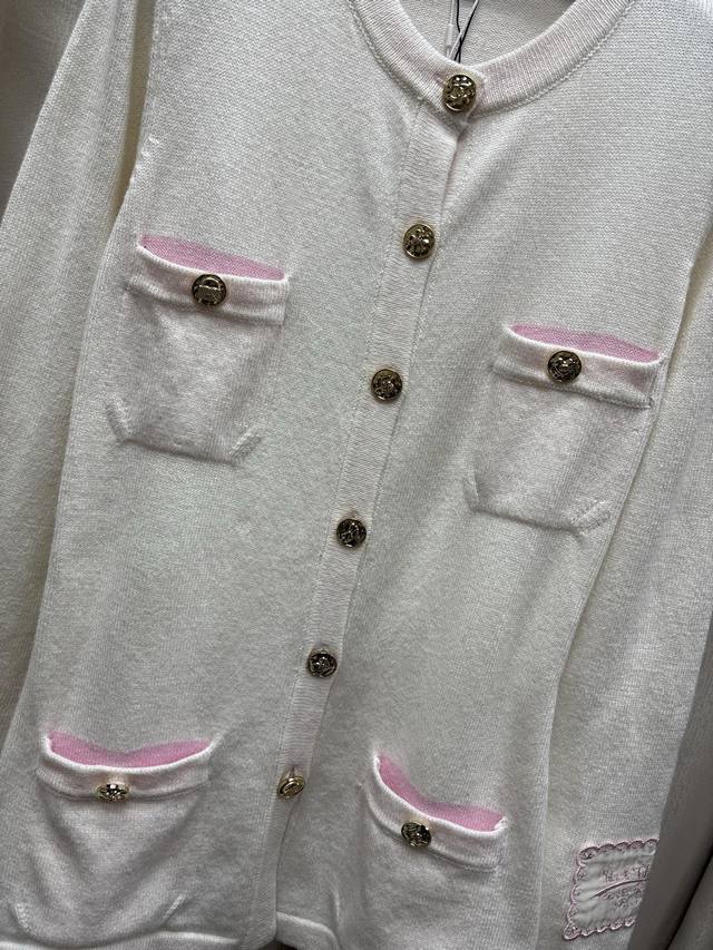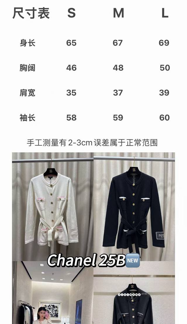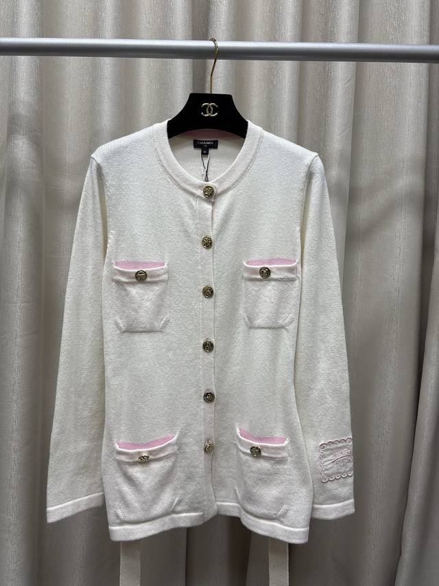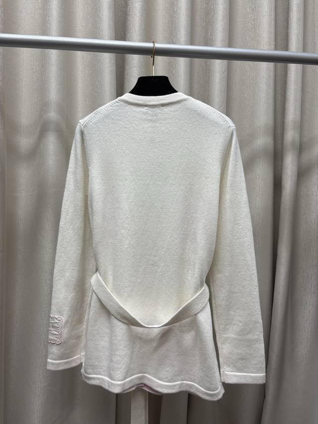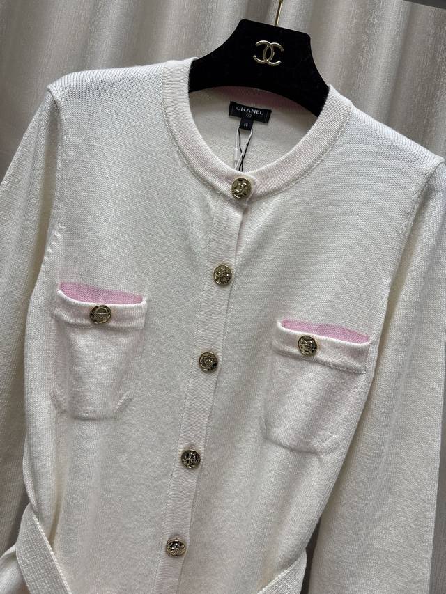 Chane*25B Autumn/Winter New Knitted Crew Neck Cardigan Yb Mold Opening Logo Hardware Button Decoration Waist Tie Design Cuff Letter Logo Patch Embellishment High-end Exquisite Light Luxury Sizes Sml