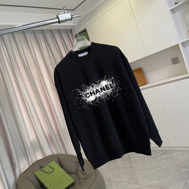 Chanel 2025 Fall/Winter New Arrival Double C Logo Print Custom Fabric 400G Crew Neck Sweatshirt Unisex Sizes: S, M, L, XL, XXL (5 sizes available) Colors: Black, White