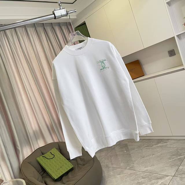 Chanel 2025 Fall/Winter New Arrival Double C Logo Print Custom Fabric 400G Crew Neck Sweatshirt Unisex Sizes: S, M, L, XL, XXL (5 sizes available) Colors: Black, White