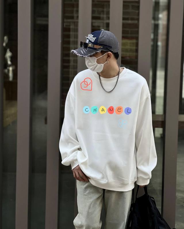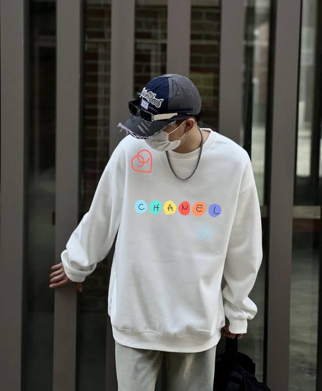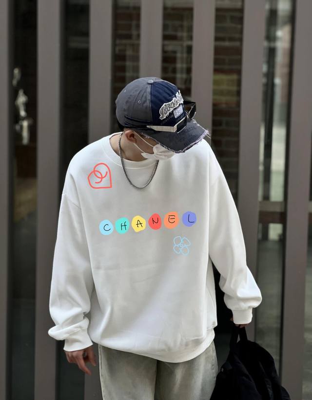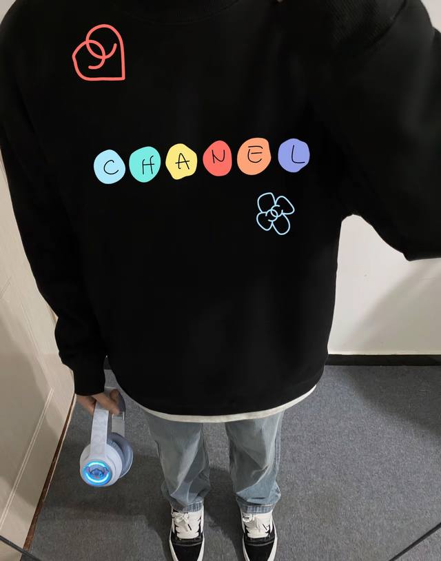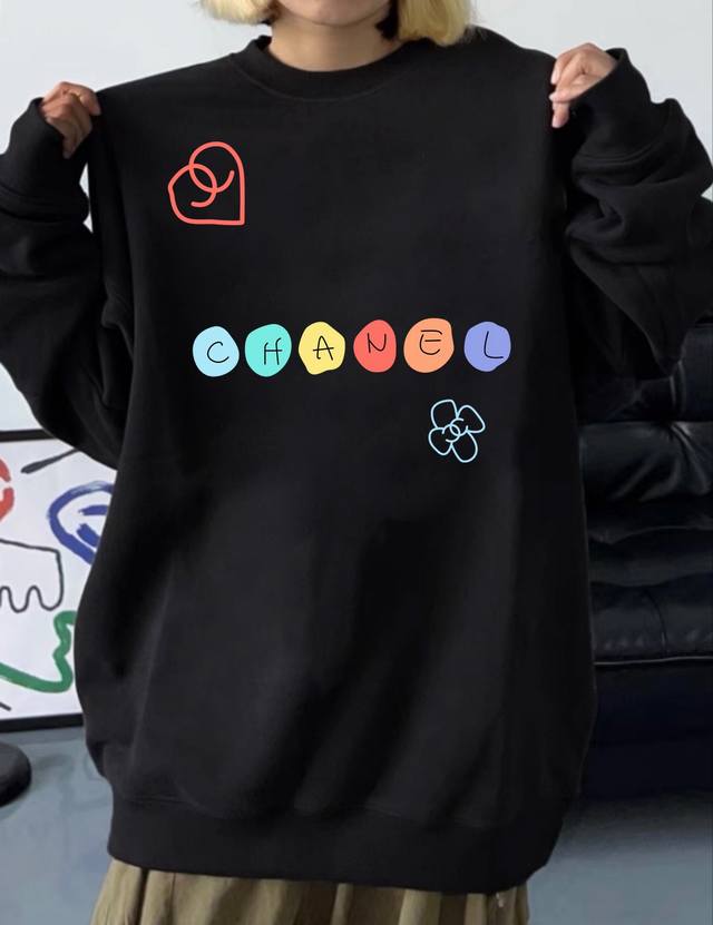 Chanel Colorful Spring/Autumn Crew Neck Sweatshirt. Original fabric, high-quality version, same style as popular online celebrities. Made with premium Xinjiang long-staple cotton, pure cotton fabric, PU direct-injection printing logo, custom dyeing process. Very comfortable to the touch, super versatile and stylish sweatshirt. Complete with all three labels, not a common market version, quality absolutely guaranteed. Colors: Black, White. Sizes: M-XL. M: Length 70cm, Chest 115cm, Shoulder 53cm, Sleeve 66cm. L: Length 72cm, Chest 55cm, Sleeve 68cm. XL: Length 74cm, Chest 125cm, Shoulder 57cm, Sleeve 70cm.